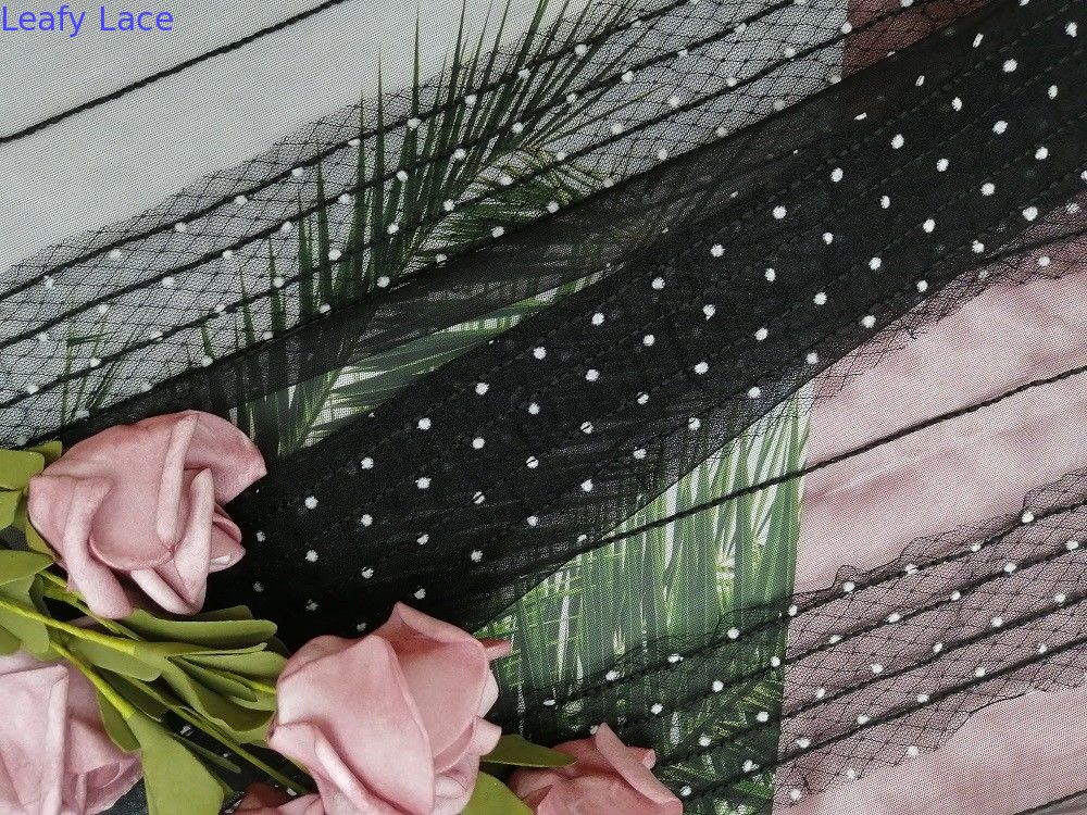 A tela preta da tela de Mesh Embroidery Dot Flocked Mesh para o vestido da menina do Pingamento Vestuário Tipo do vestido de nivelamento da senhora é para matérias têxteis da casa, cortina, artigos do fundamento, fatos, chapéus, vestidos de casamento, blusas, o Vestuário da senhora, toalha de mesa, vestidos das meninas, forma sapatas, calças, a calças, o short, revestimentos, etc. fêmeas.