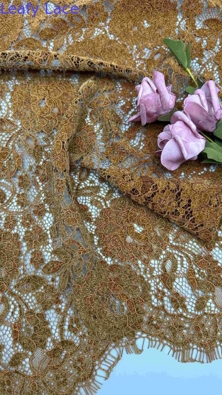 | Destacar: | Tecido de encaixe de bordas de flores,Tecido de encaixe de fios de cinil de cor marrom,As mulheres vestem tecido de renda |