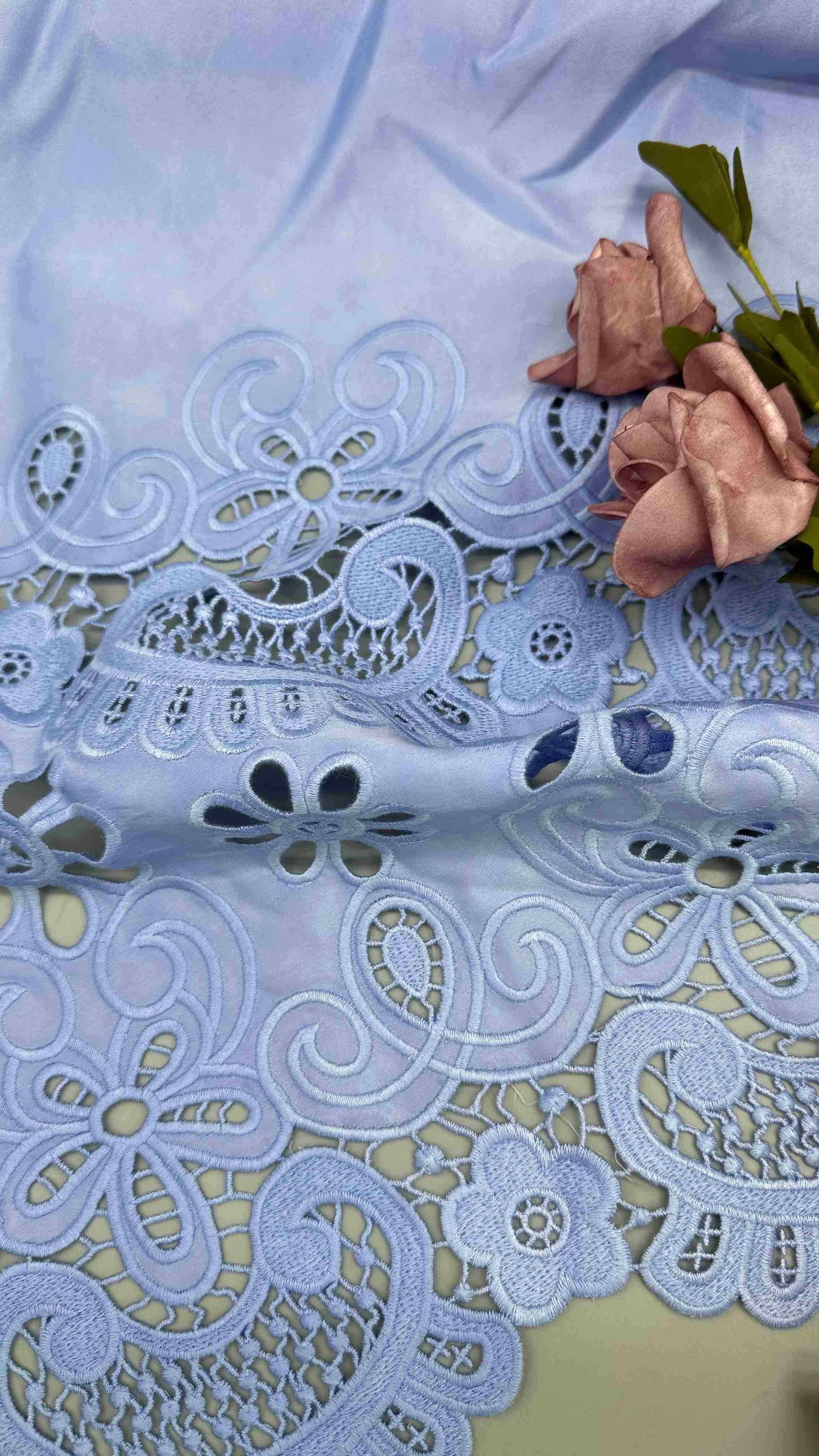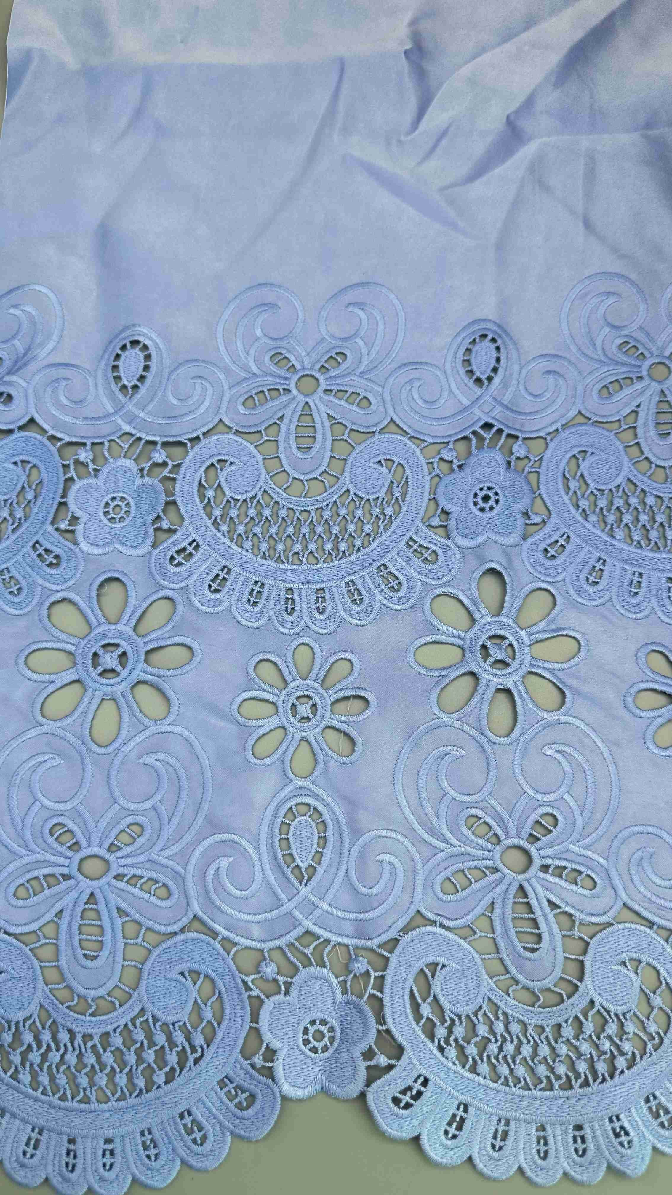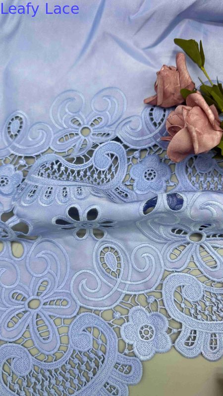 Tecido de bordado de corte a laser azul claro Poly Grpund bordado Tecido de pálpebras para marcas de vestuário