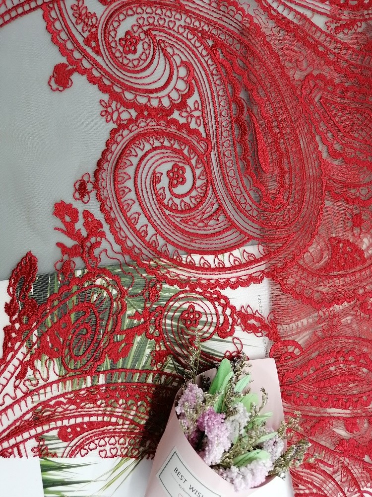 - A tela vermelha do laço de Paisley da tela de Mesh Bridal Dress Colored Embroidery do tule é apropriada para mulheres, meninas, senhoras, noiva, casamento, partido, aniversário e toda a outra ocasião.