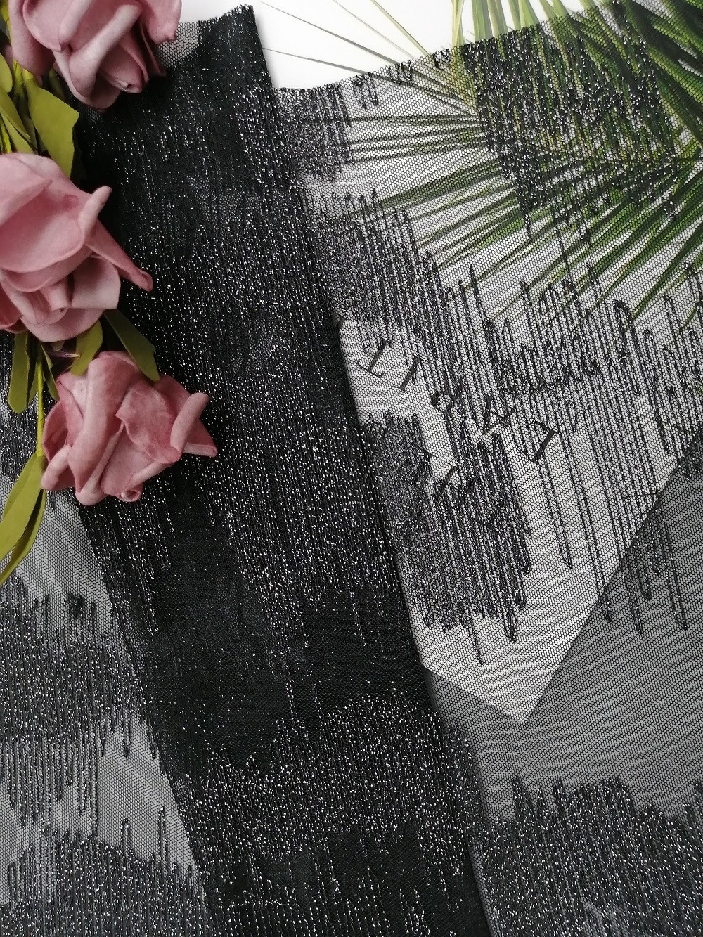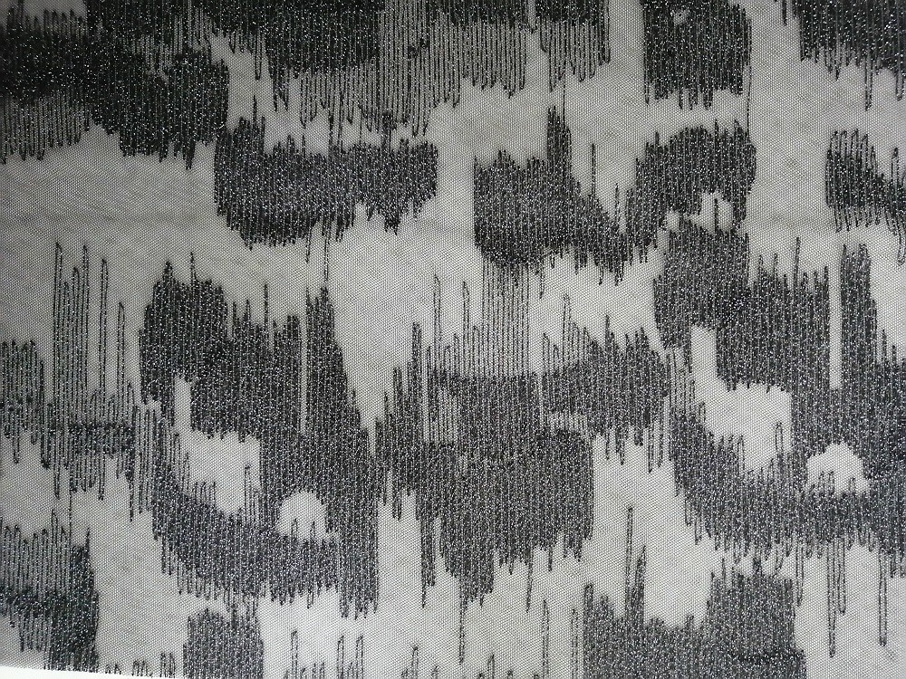 - A linha geométrica do fio de prata metálico preto de Lurex bordou a tela do laço para os vestidos o Vestuário Fêmea Pingamento da senhora, da saia, das meninas, as matérias têxteis da casa, a cortina, os artigos do fundamento, os fatos, os chapéus, os vestidos de casamento, as blusas, etc.