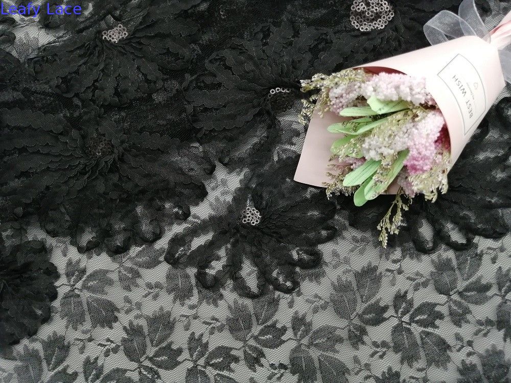 - A lantejoula preta ata o partido que retirado o núcleo tela do bordado do bordado de Applique 3D o laço para mulheres contorna por muito tempo vestidos das meninas do vestuário do vestido, as matérias têxteis da casa, a cortina, os artigos do fundamento, os fatos, os chapéus, os vestidos de casamento, as blusas, etc.