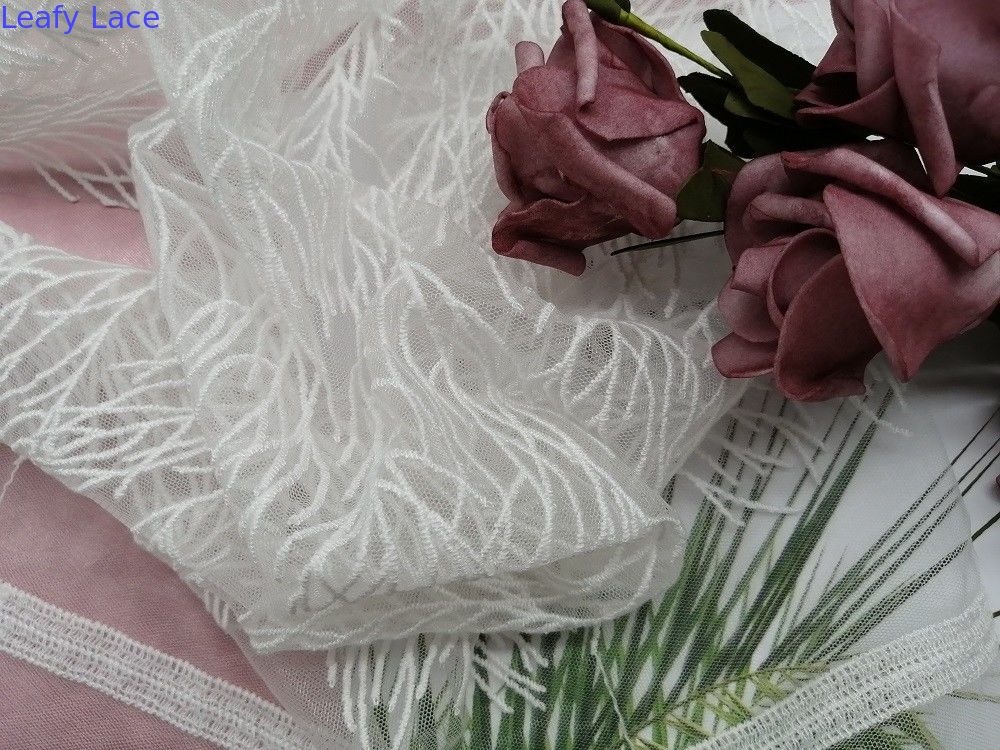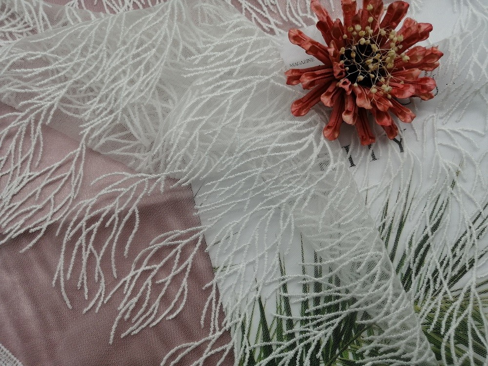 O tule amarrado branco Mesh Embroidery da tela do laço para o casamento veste especificações nupciais dos artigos do fundamento do vestido: