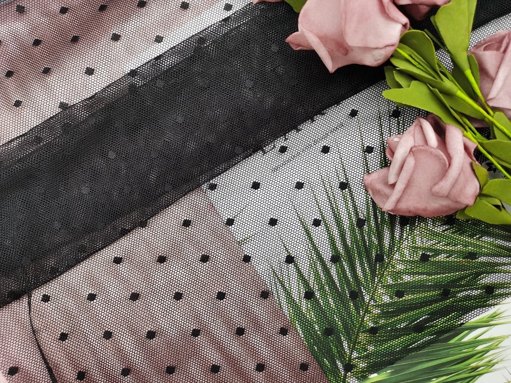 A polca preta Dot Elastic Mesh Soft Stretch ata a tela para a menina que o vestido é para matérias têxteis da casa, cortina do Pingamento Vestuário Tipo do vestido de noite da senhora, artigos do fundamento, fatos, chapéus, vestidos de casamento, blusas, o Vestuário da senhora, toalha de mesa, vestidos das meninas, forma sapatas, calças, a calças, o short, revestimentos, etc. fêmeas.