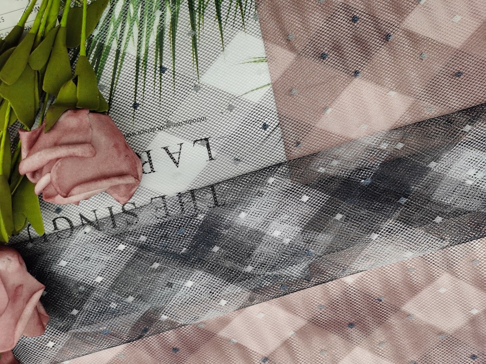 Destacar: | Poliéster Dot Mesh Fabric de 147CM,147CM Dot Flocked Mesh Fabric,O poliéster reuniu Mesh Fabric |