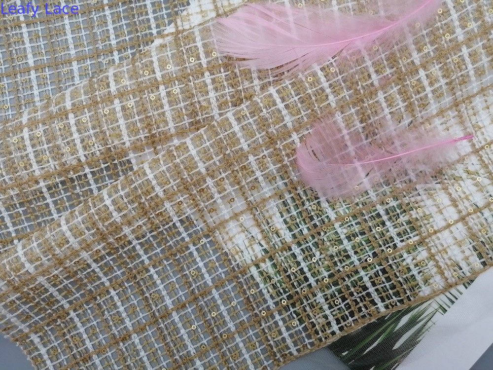 Destacar: | Tela bordada da lantejoula caqui,125CM Mesh Corded Sequin Embroidered Fabric,tela caqui do laço do vestido da menina 100yards |