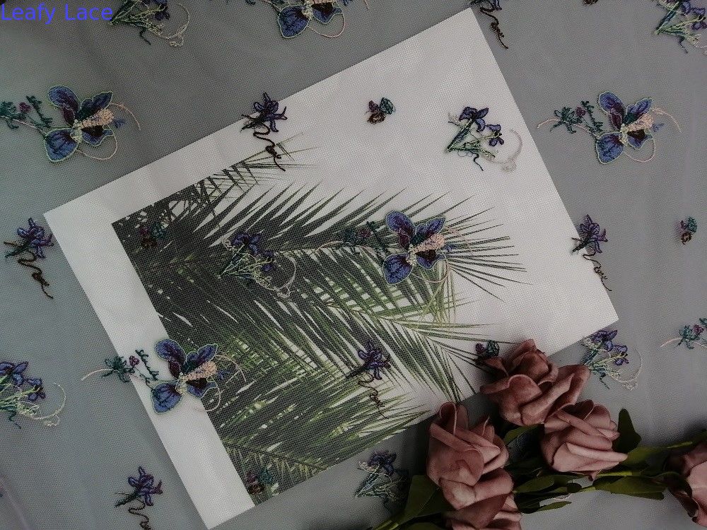 Tule delicado colorido Mesh Colored Embroidery Fabric para especificações do vestido da menina do Pingamento Vestuário Tipo do vestido de noite da senhora: