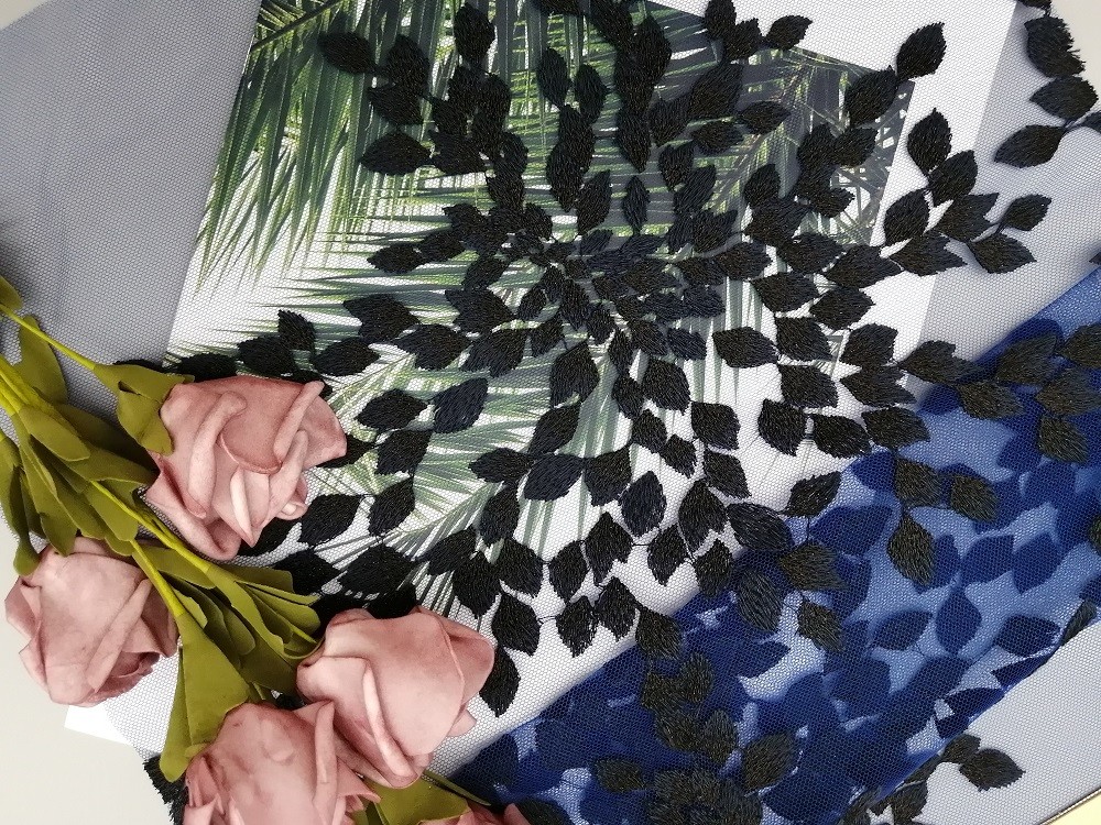 | Destacar: | Tela do laço dos azuis marinhos do bordado,Tela floral do laço do bordado 3D,Tela floral do laço 3D de 125CM | ||