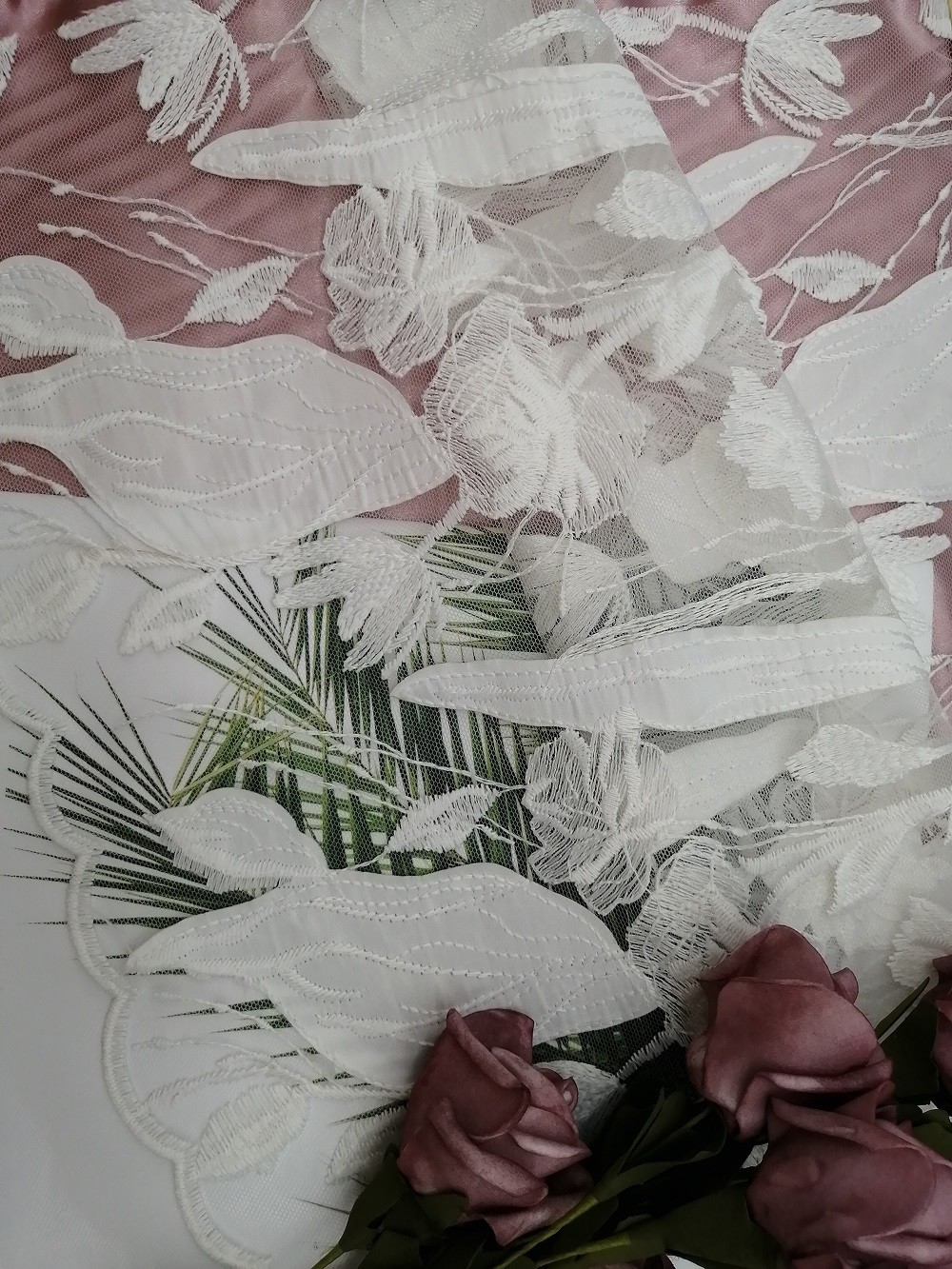 | Destacar: | Tela do laço do Cutwork do bordado de 125CM,Tela do laço do Cutwork do Applique do tule,O laser branco cortou a tela do tule do Applique |