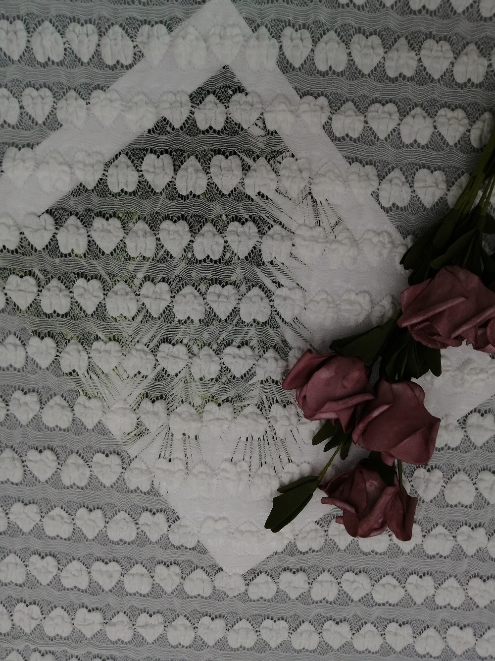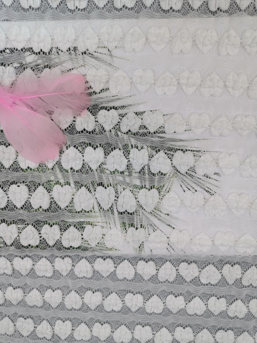 Nome do produto: | Tela do laço do estiramento | Característica: | Laço branco da forma do coração |