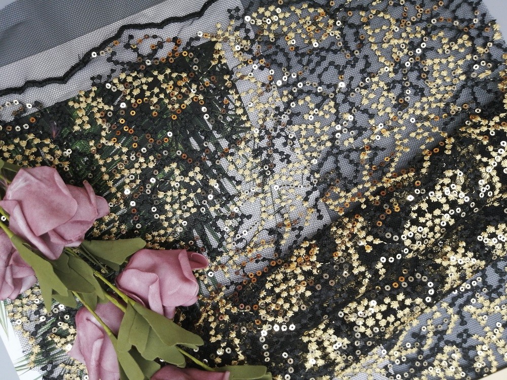 A lantejoula preta da tela do partido do bordado bordou a tela para a menina que o vestido é para matérias têxteis da casa, cortina do Pingamento Vestuário Tipo do vestido de noite da senhora, artigos do fundamento, fatos, chapéus, vestidos de casamento, blusas, o Vestuário da senhora, toalha de mesa, vestidos das meninas, forma sapatas, calças, a calças, o short, revestimentos, etc. fêmeas.