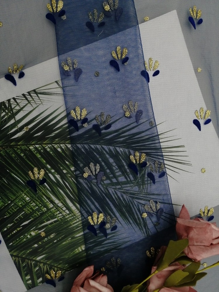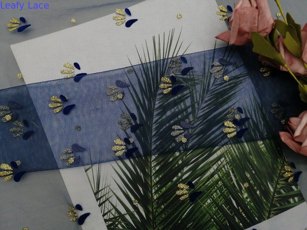 Destacar: | Tela impressa folha dos azuis marinhos de 135CM,Tela impressa folha reunida metálica,Tela reunida metálica do tule de 135CM |