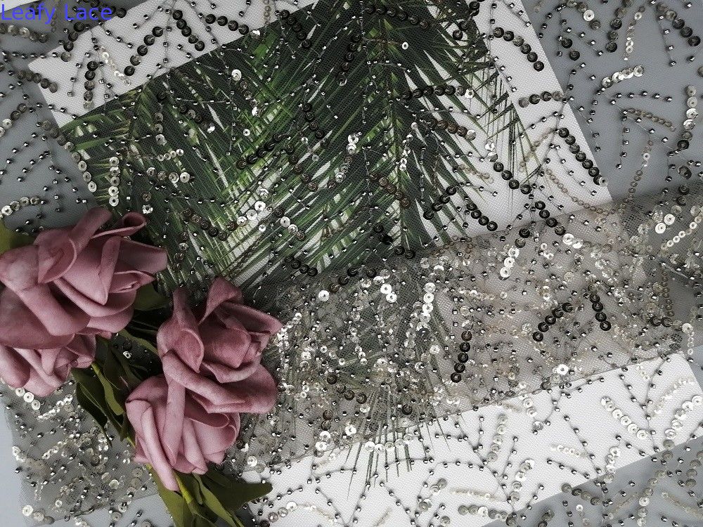 A tela do partido de Grey BestSeller Sequin Lace Fabric perlou a tela do bordado para vestidos da senhora o vestuário da decoração que do vestido é apropriado para vestidos das mulheres, da saia, das meninas do vestido de casamento, matérias têxteis da casa, cortina, artigos do fundamento, fatos, chapéus, vestidos de casamento, blusas, etc.