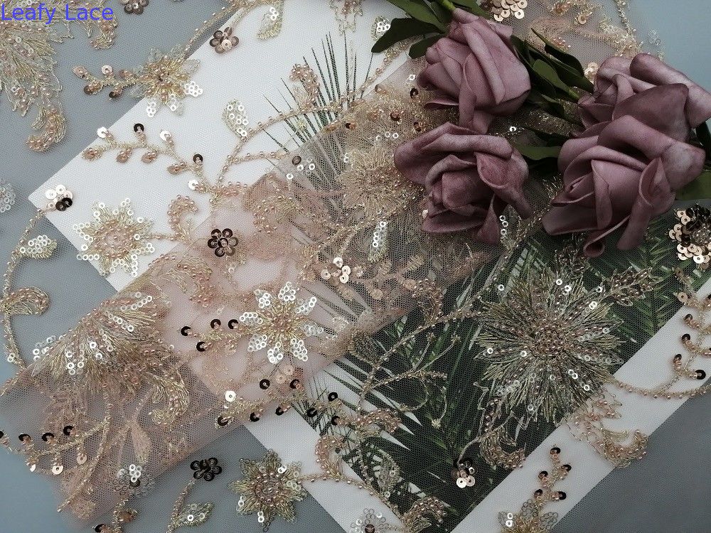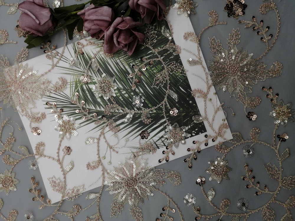 Destacar: | tela floral cor-de-rosa da lantejoula de 125cm,tela frisada do bordado de 125cm,tela frisada do bordado da lantejoula 60yards |
