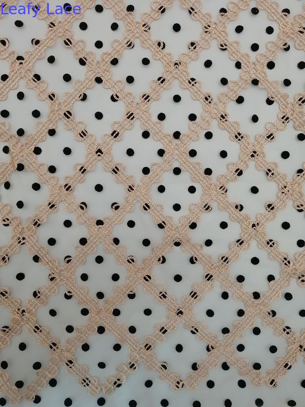 O vestido fêmea da menina da decoração do vestido da senhora do vestido de Dot Flock Embroidery Flocked Tulle Mesh Flocked Mesh Fabric For da polca pode cumprir a exigência do padrão 100 de OEKO-Tex.