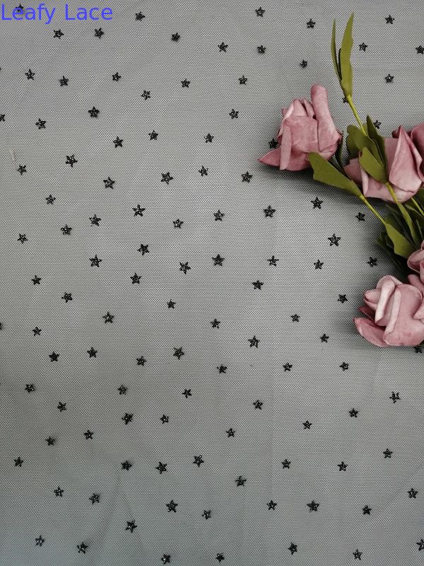 Folha metálica de Mesh Fabric Women Dress do tule do laço da forma da estrela que imprime especificações de revestimento do tule: