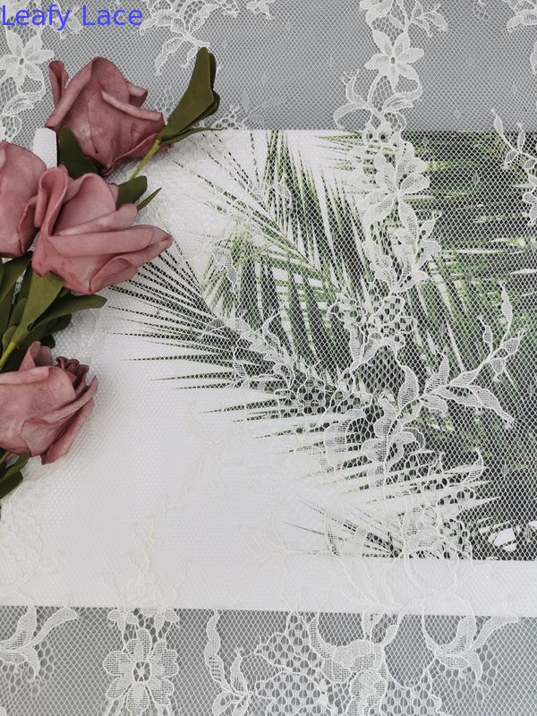 especificações macias do laço da tela floral branca de Mesh Fabric Embroidery do tule do laço 100%nylon: