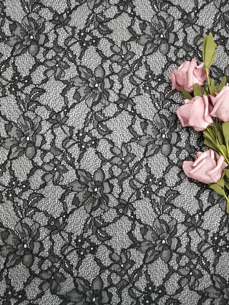 especificações francesas do laço de Mesh Fabric Embroidery Raschel do tule do laço de chantilly do preto 100%nylon: