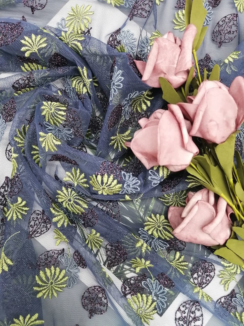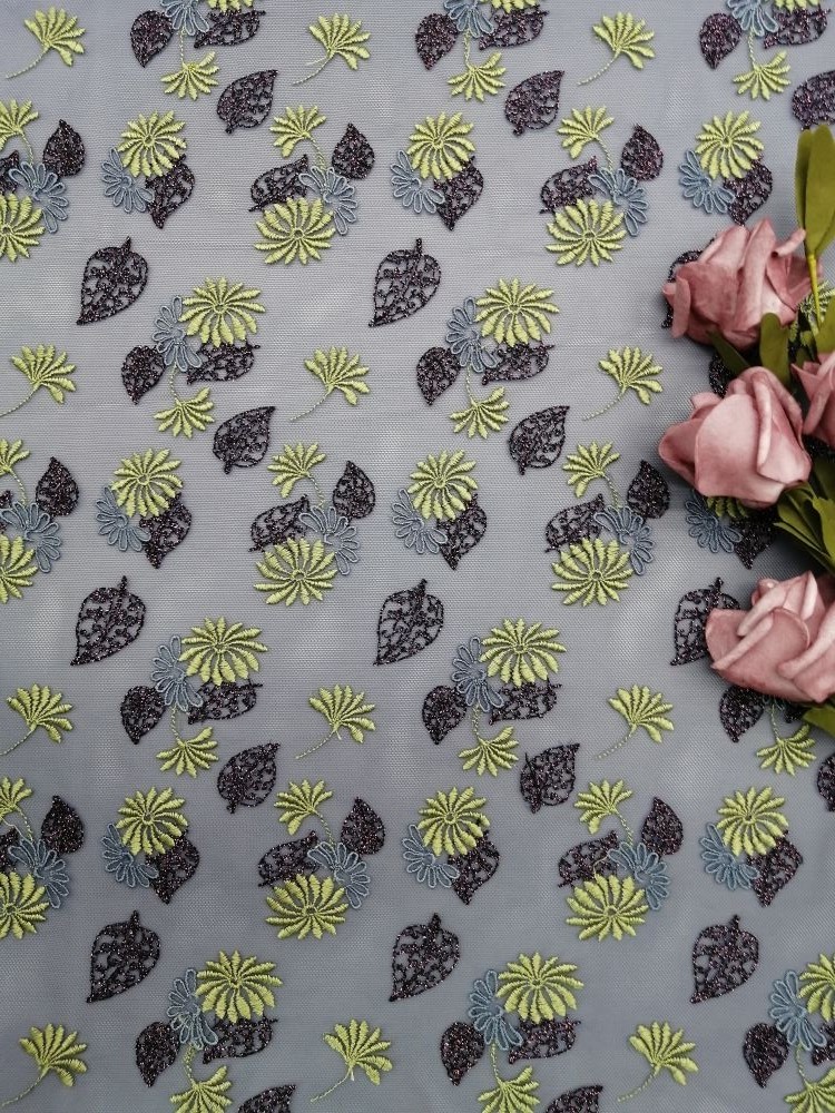Estilo: | Tela colorida do bordado do voile | Característica: | Tule metálico |