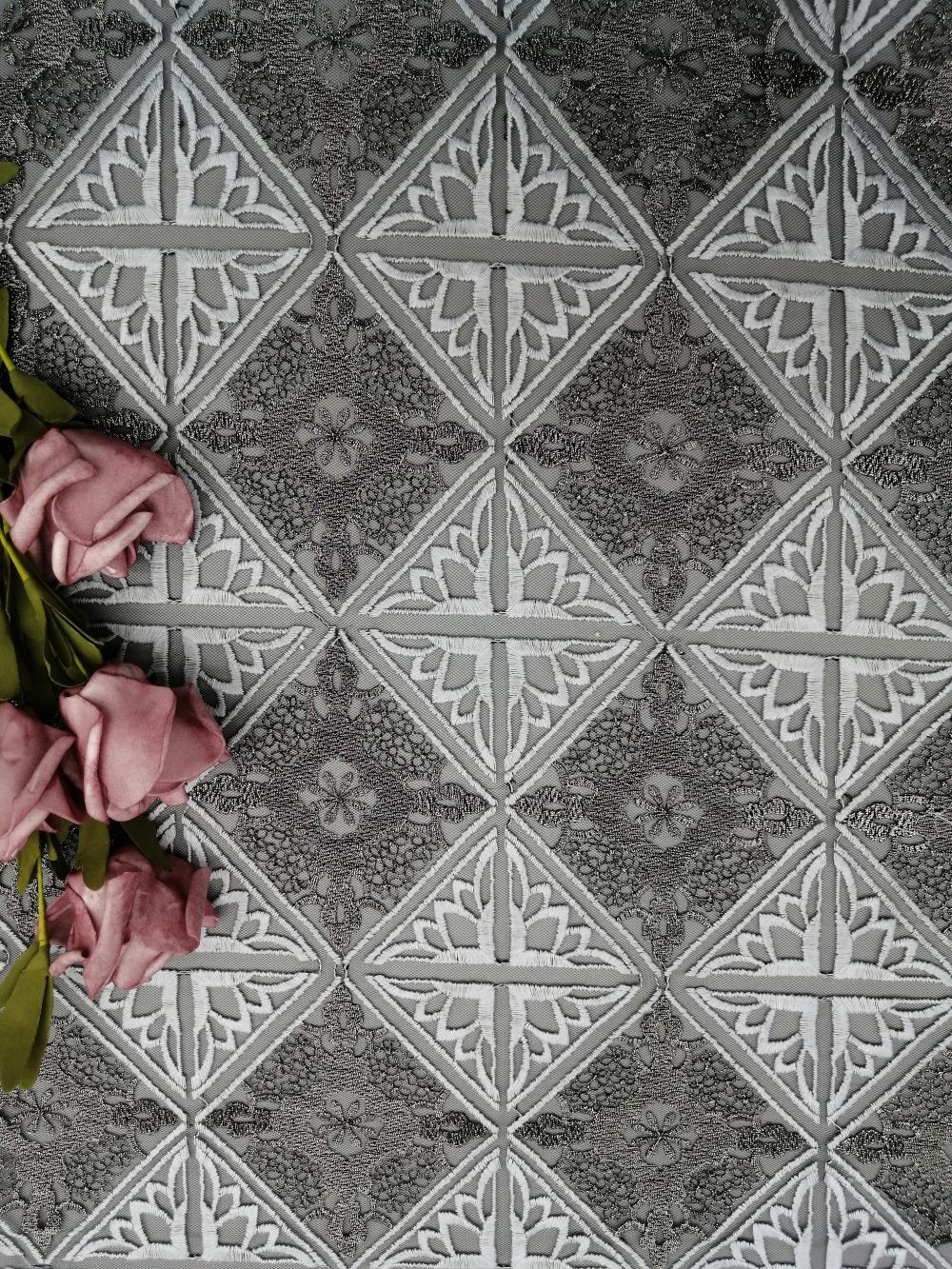 Especificações de pano da cortina de Geo Diamond Tulle Embroidered Lace Fabric: