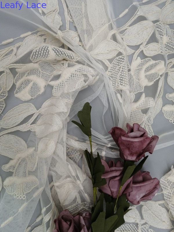- Da cama amarrado da tela do laço do bordado do algodão bege o pano floral Cording do tule pode cumprir a exigência do padrão 100 de OEKO-Tex.
