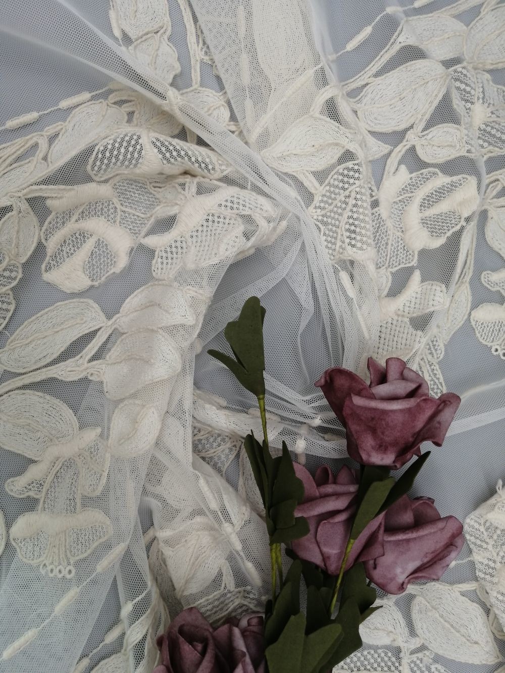 | Destacar: | Tela amarrado do bordado bege do algodão,Tela amarrado do bordado de 125CM,De pano floral do tule da cama tela amarrado |