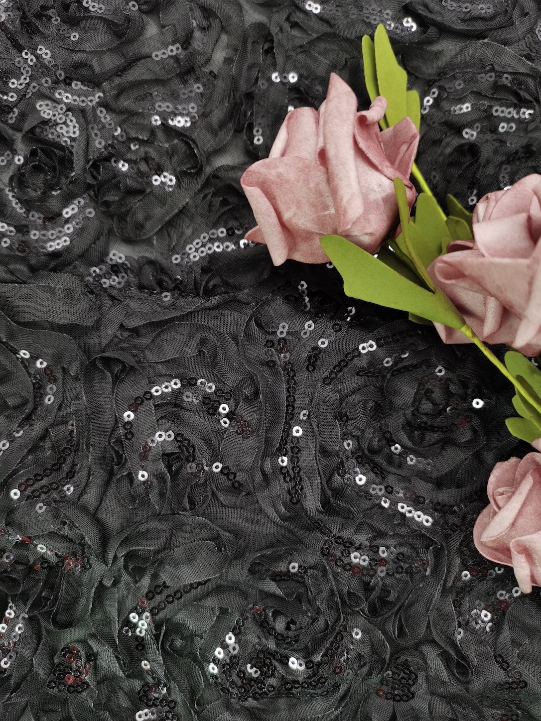 Destacar: | Tela bordada do laço do vestido de noite,Tela bordada preta do laço do poliéster,OEKO-TEX bordou a tela do laço da lantejoula |