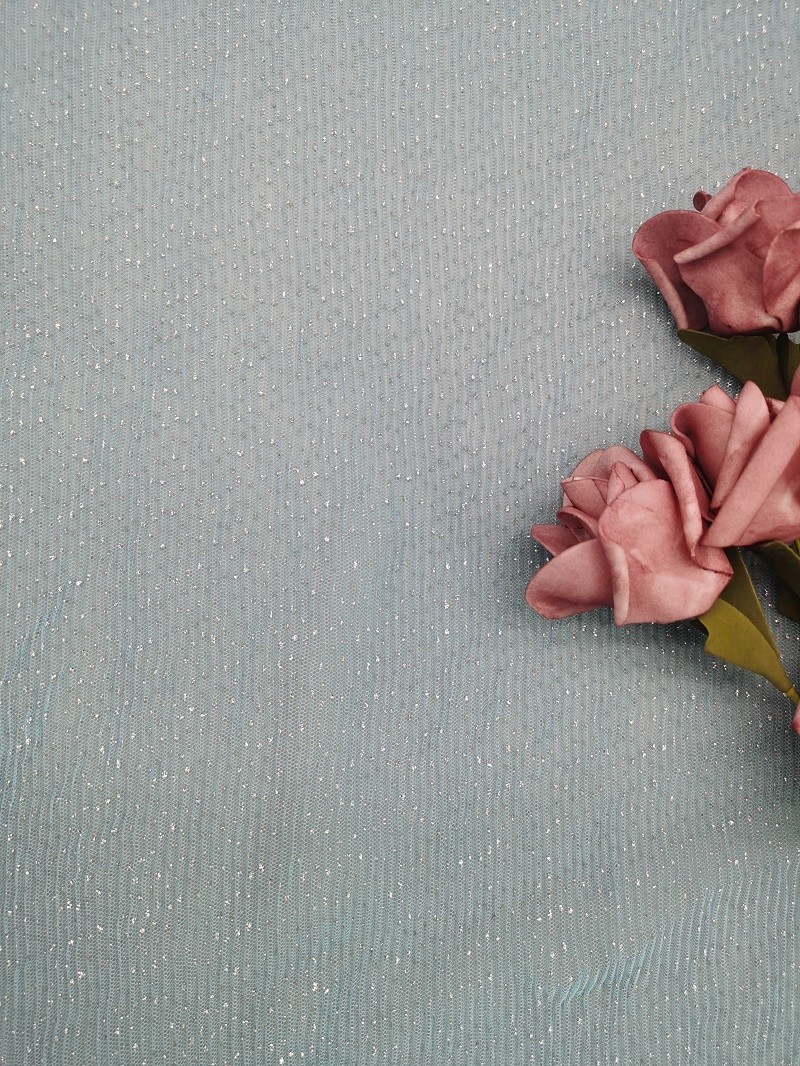 - Bule Dot Tulle Mesh Foil Printed que a tela plissou a tela do laço pode cumprir a exigência do padrão 100 de OEKO-Tex.