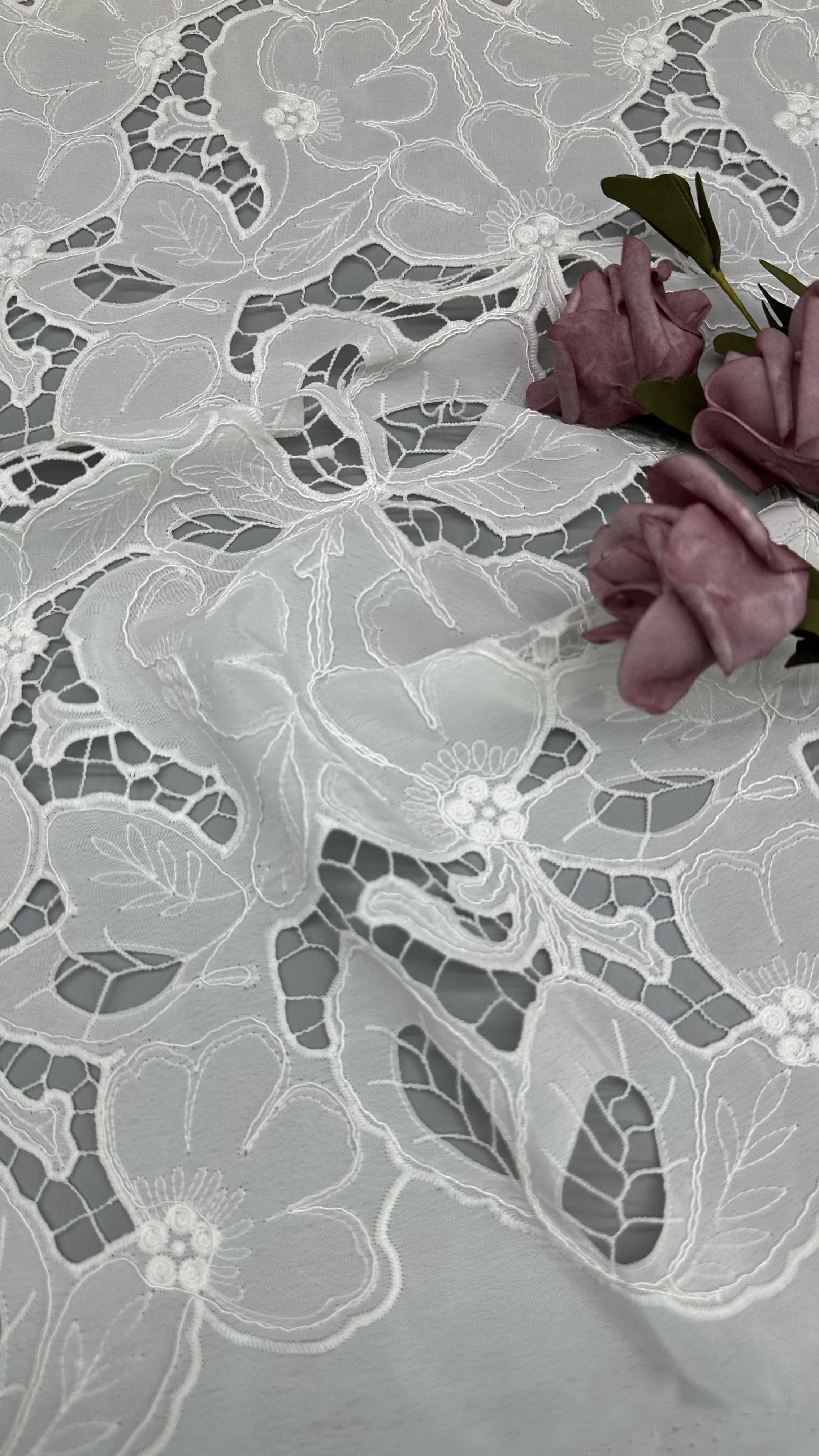 Este tecido de bordado de renda Geo pode ser um ótimo vestido completo para roupas de moda, casamento e festa etc. Também pode ser facilmente transformado em suas decorações favoritas por seu design simples e inteligente.