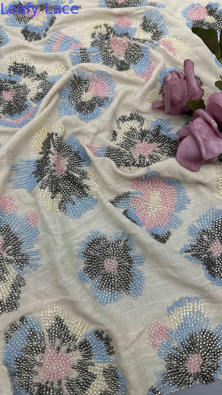 Destacar: | Tecido de bordados coloridos com contas,Tecido de bordados de largura total,Tecido 100% bordado com rayon |
