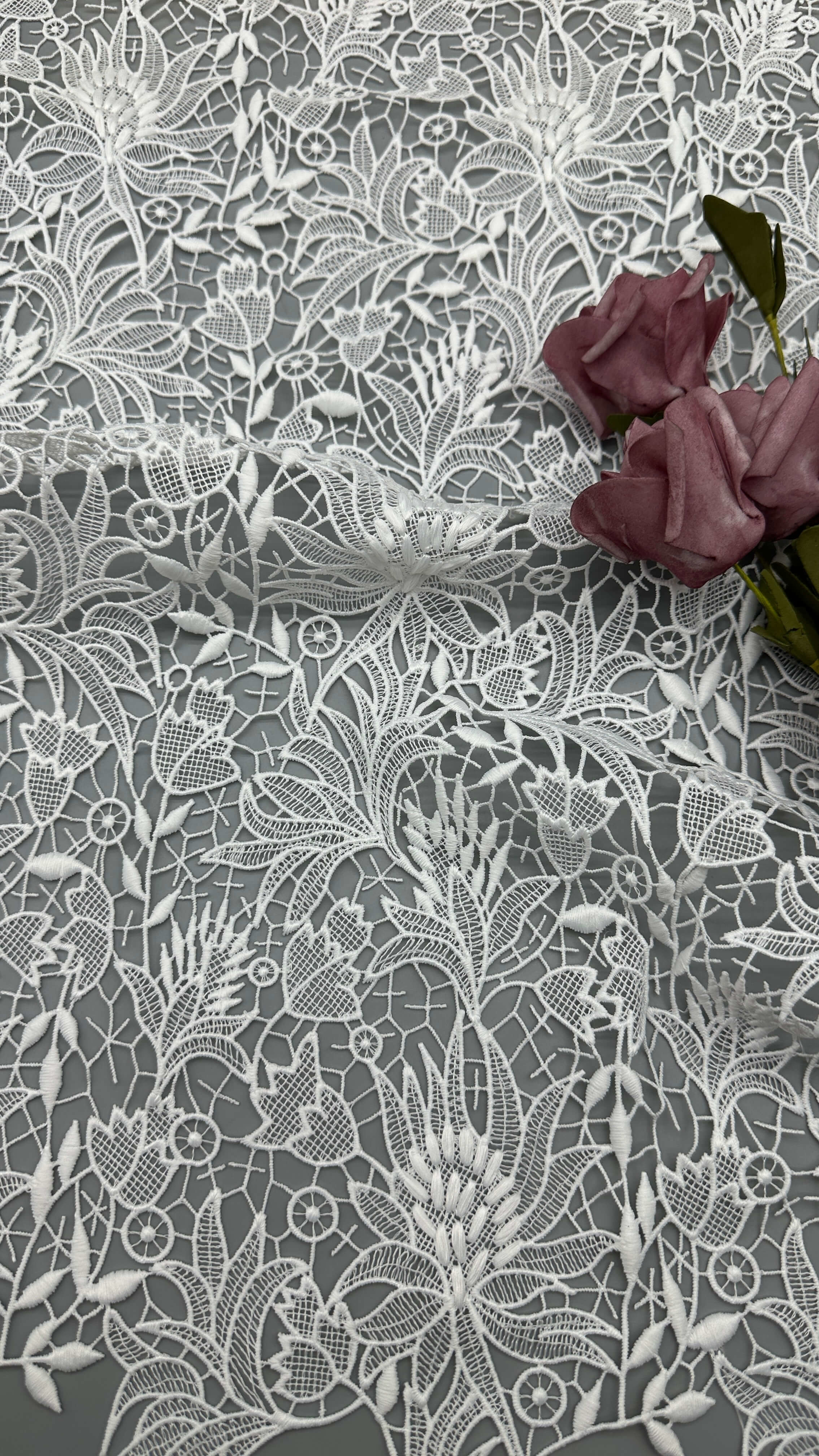 Destacar: | Tecido de renda de bordados de luxo,Lanteja de flores de algodão branco,Tecido de casamento bordado com lenços |