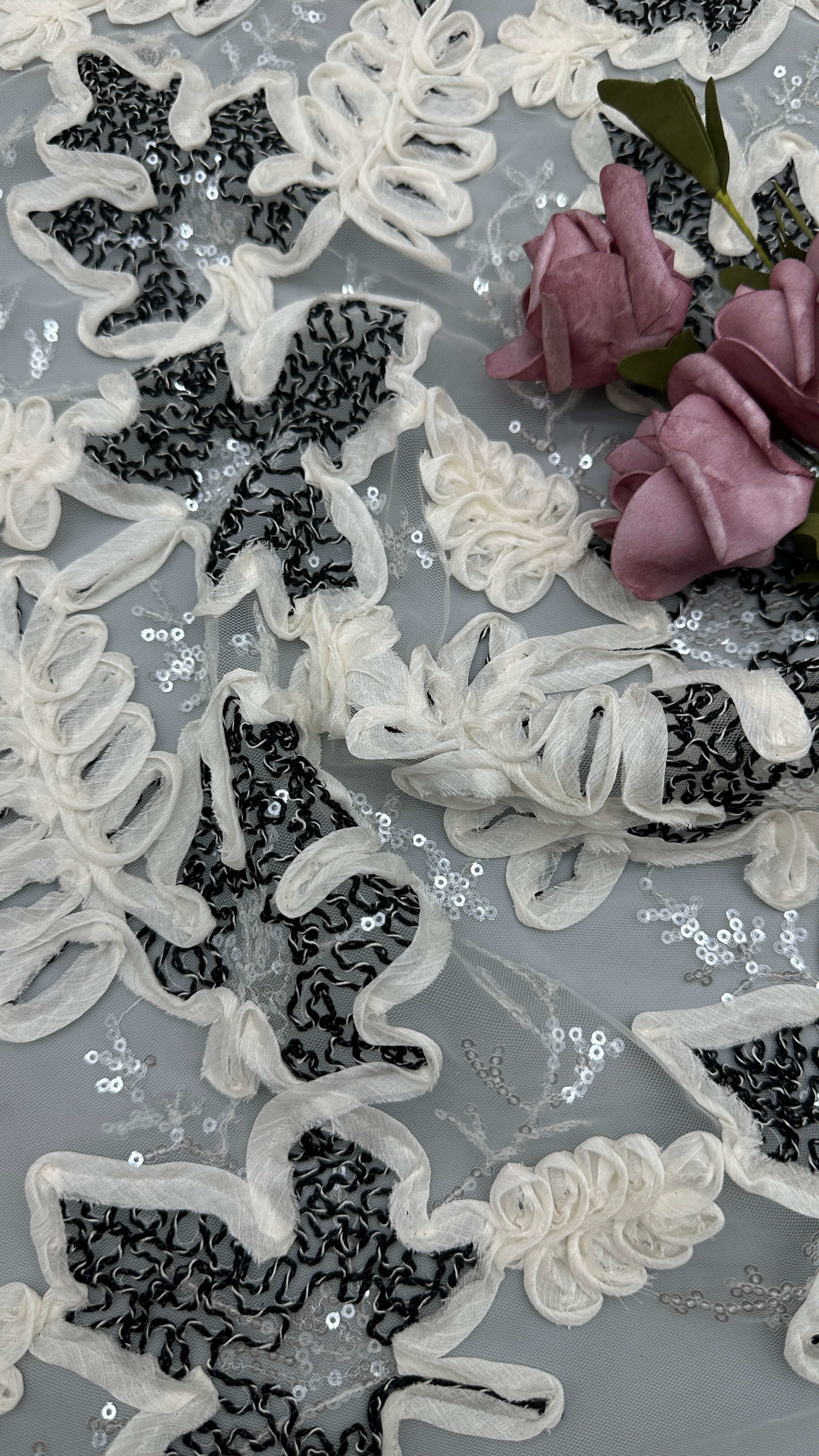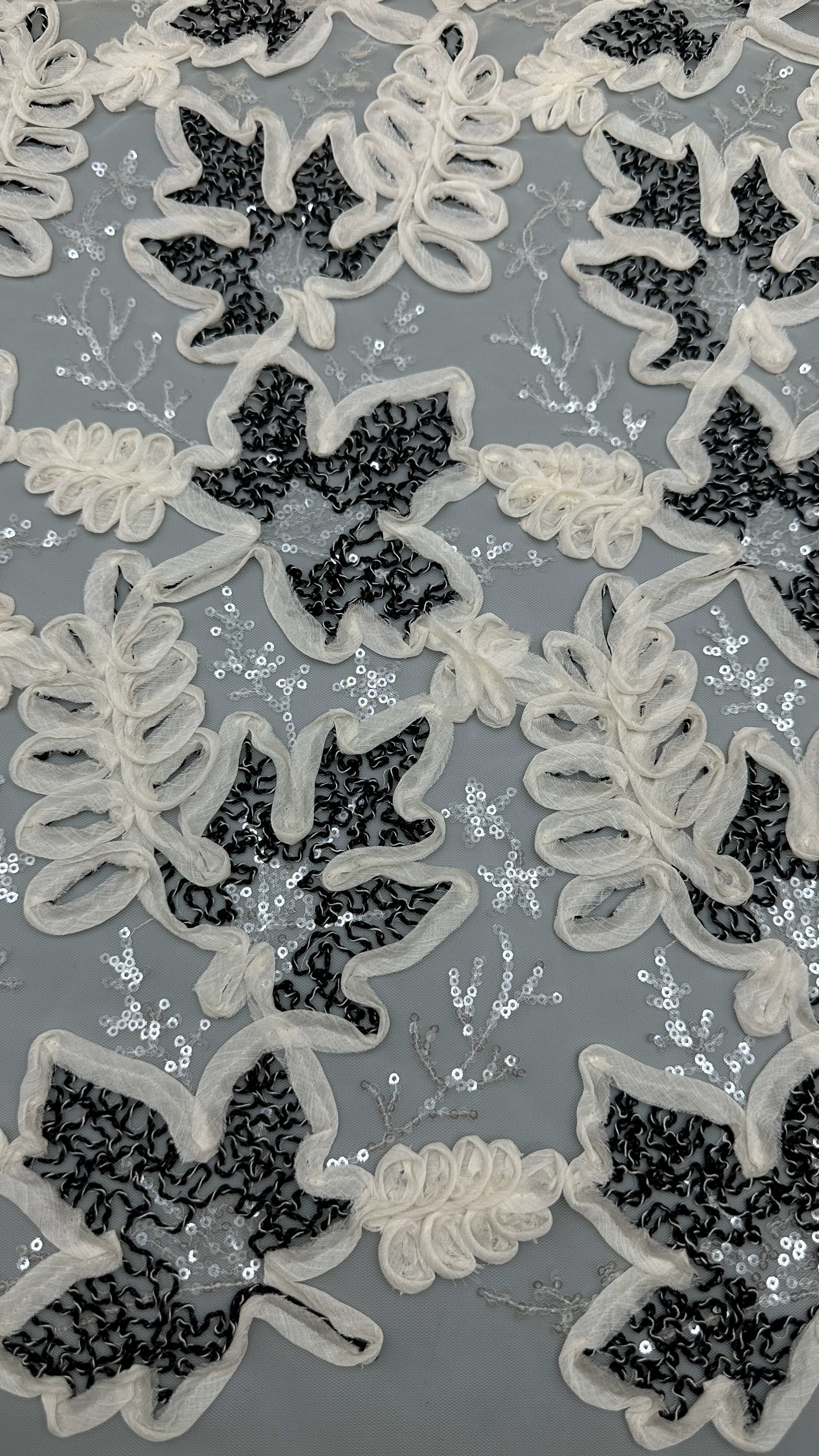 Destacar: | Sequin Embroidered Fabric Elegant.,Tecido bordado de seda de poliéster,Respirar Sequin Tecido bordado |