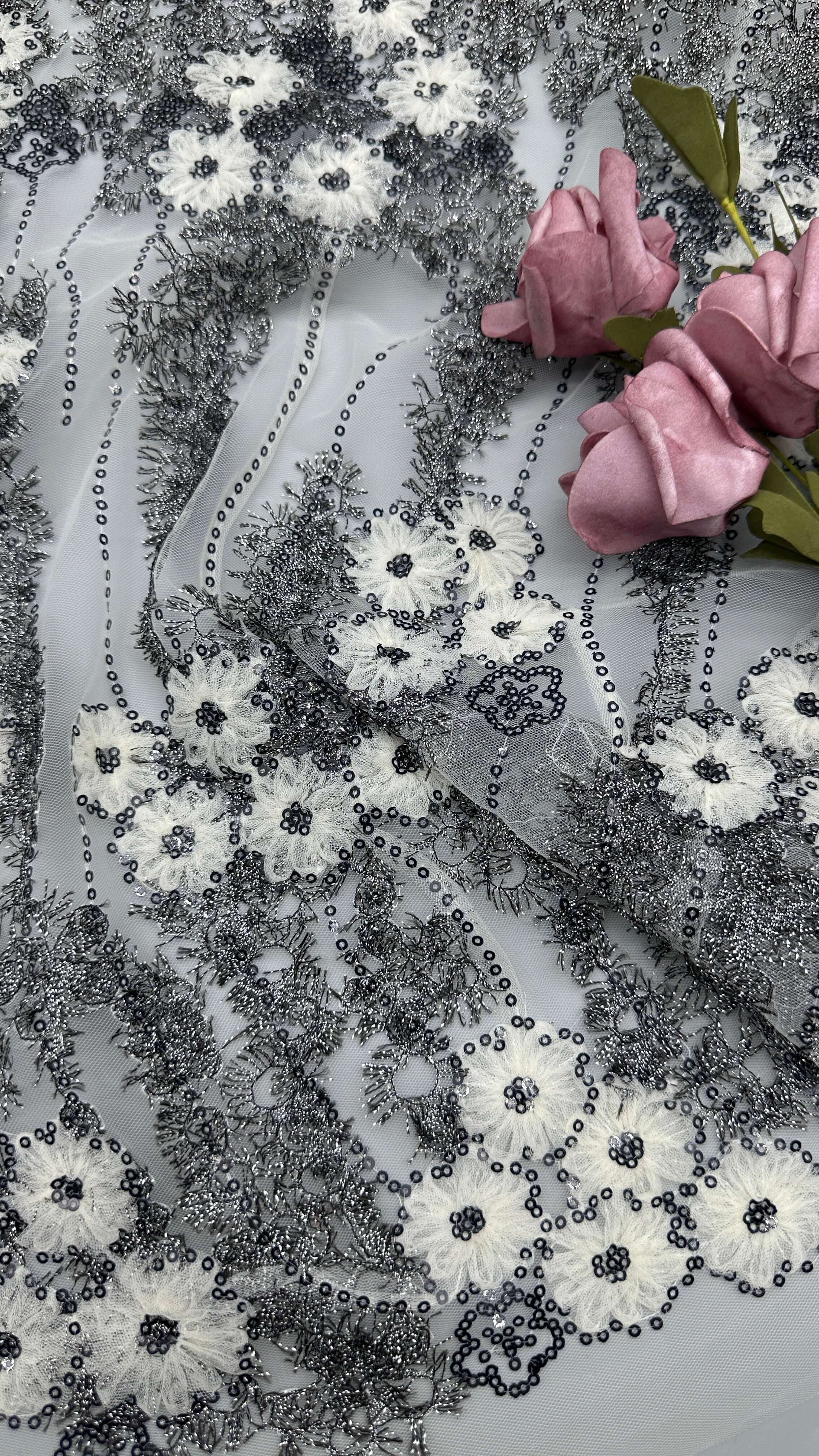 Destacar: | Tecido de encaixe metálico de bordados de spandex,Tecido de renda metálica de alta qualidade,Elegante tecido de renda metálica |