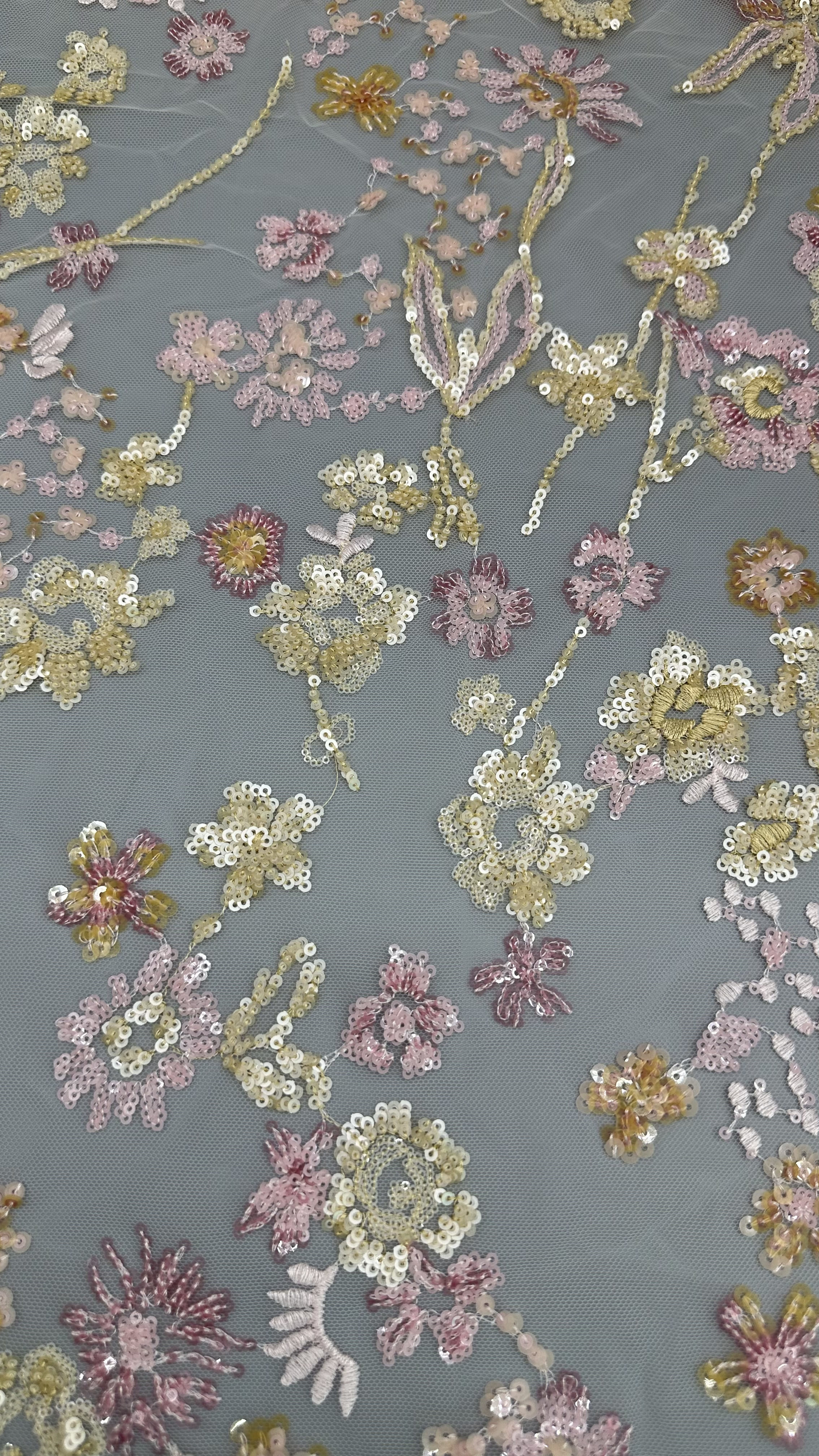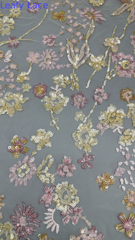 Destacar: | Tecido bordado com lenços de seda floral 3D,Tecido bordado de luxo para ocasiões,Elegante tecido bordado com lenços |