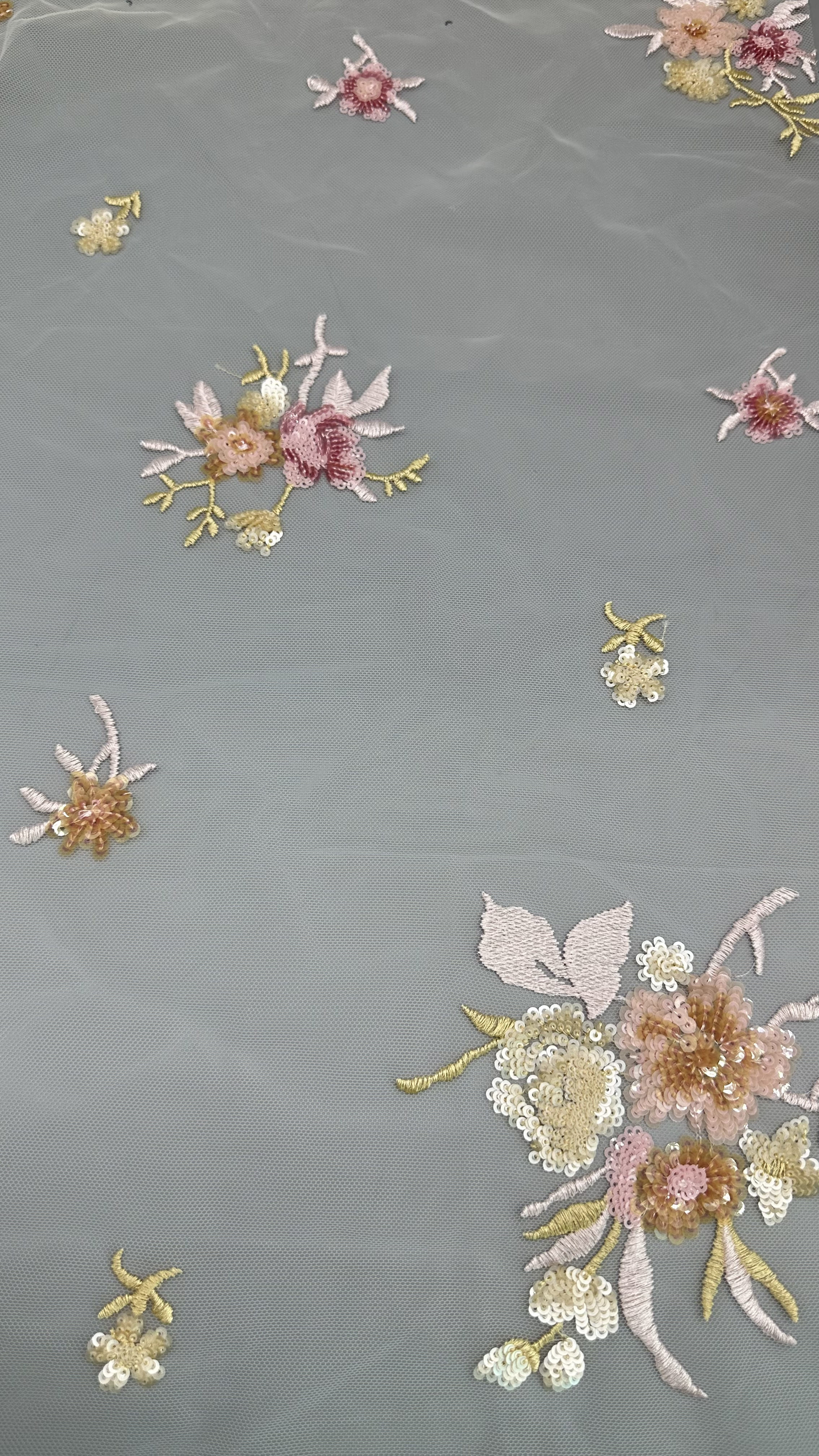 Destacar: | Tecido de renda floral 3D para ocasiões de luxo,Tecido de renda floral 3D,Elegante tecido de renda floral 3D |