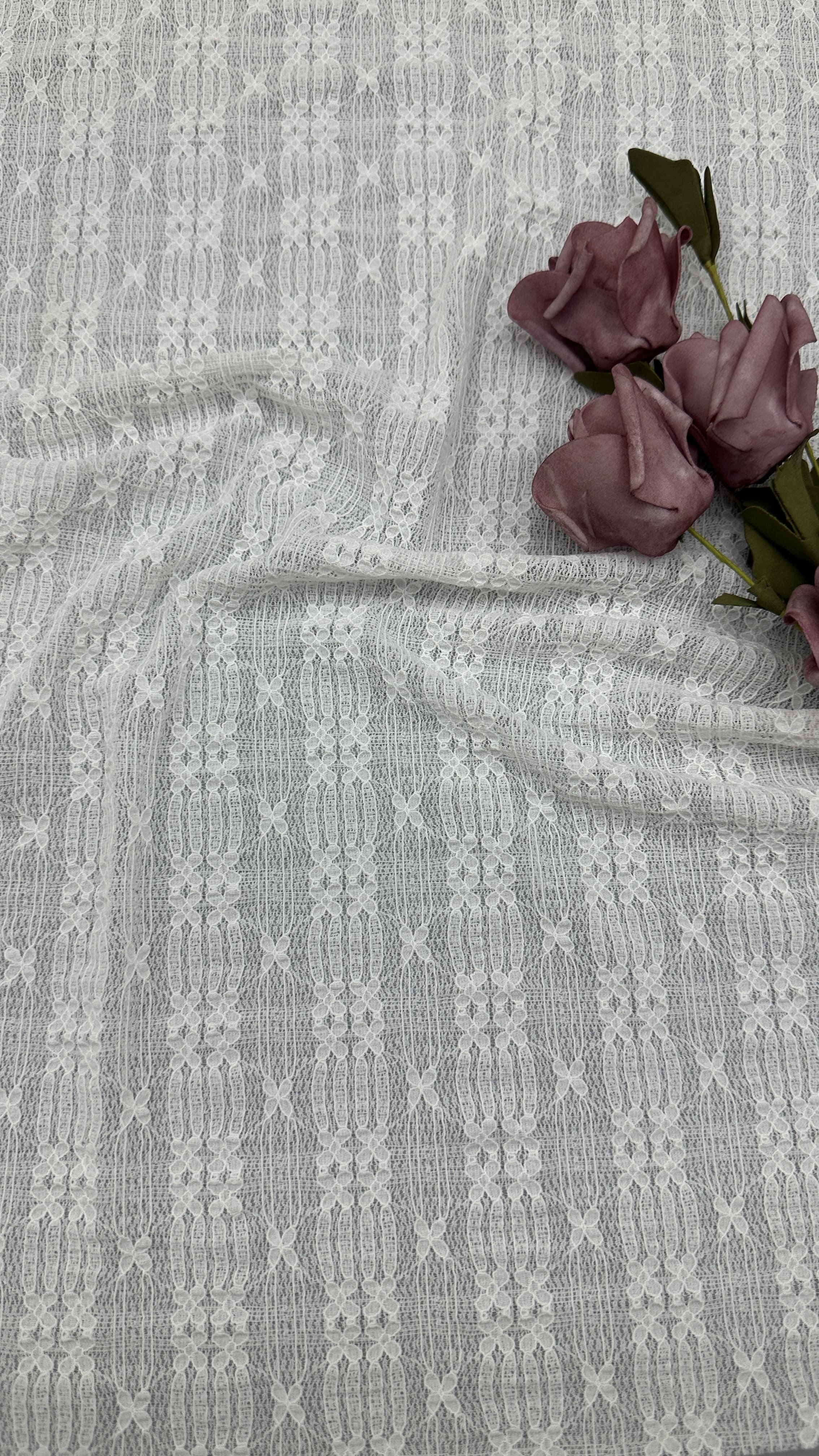| Destacar: | Tecido bordado de renda branca de folhas,Tecido bordado de renda tipo listra barroca |
