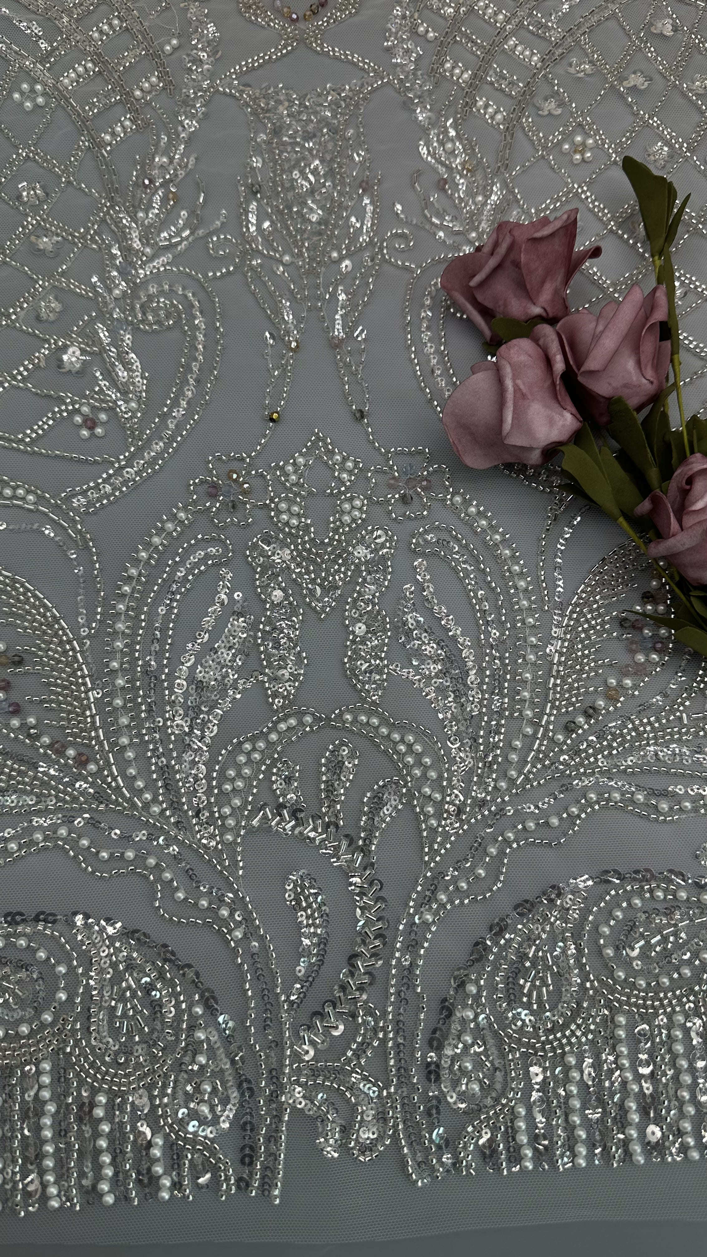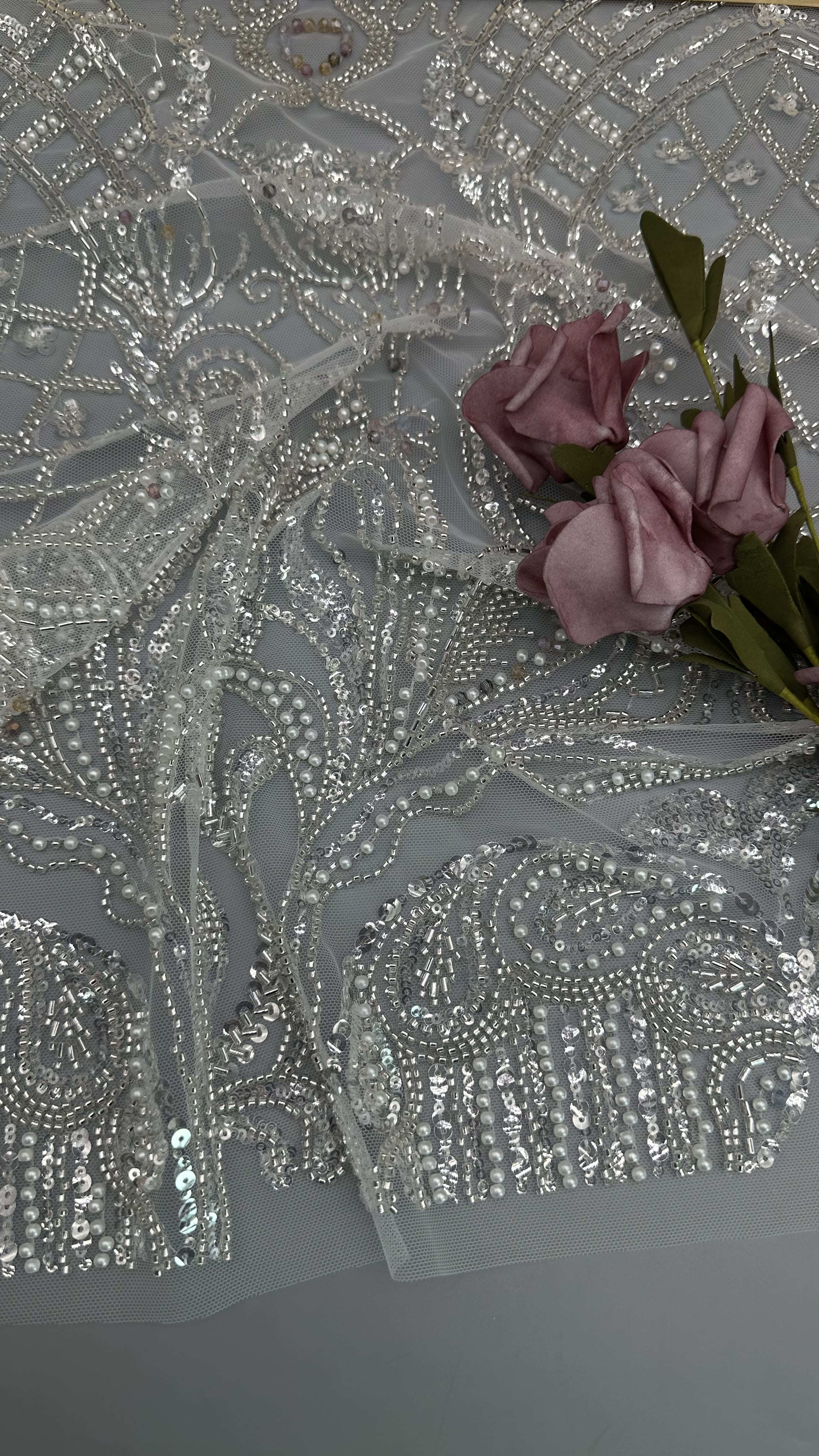 Destacar: | Tecido de renda bordada com pérolas,Tecido de renda bordada com pérolas e contas |