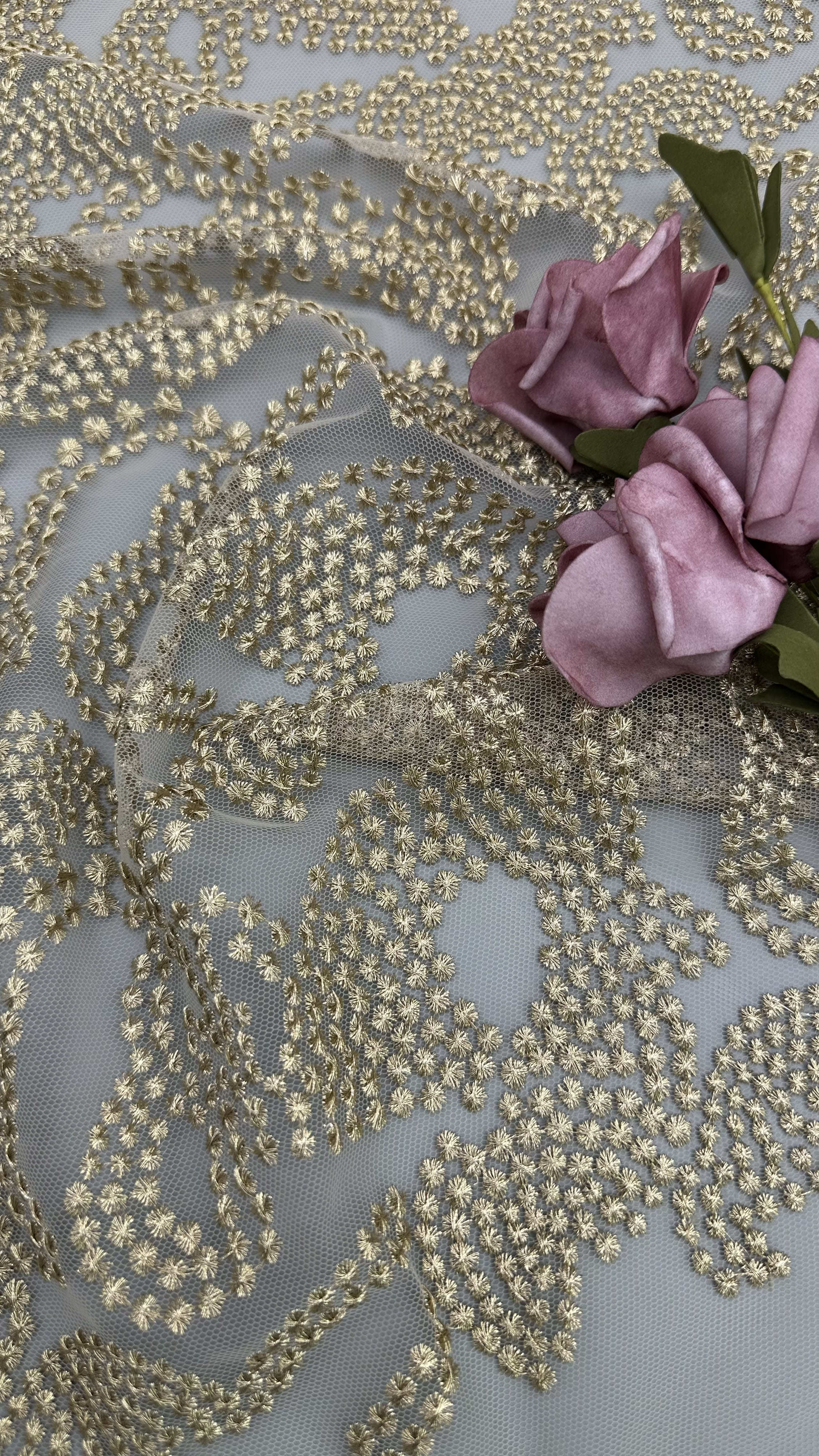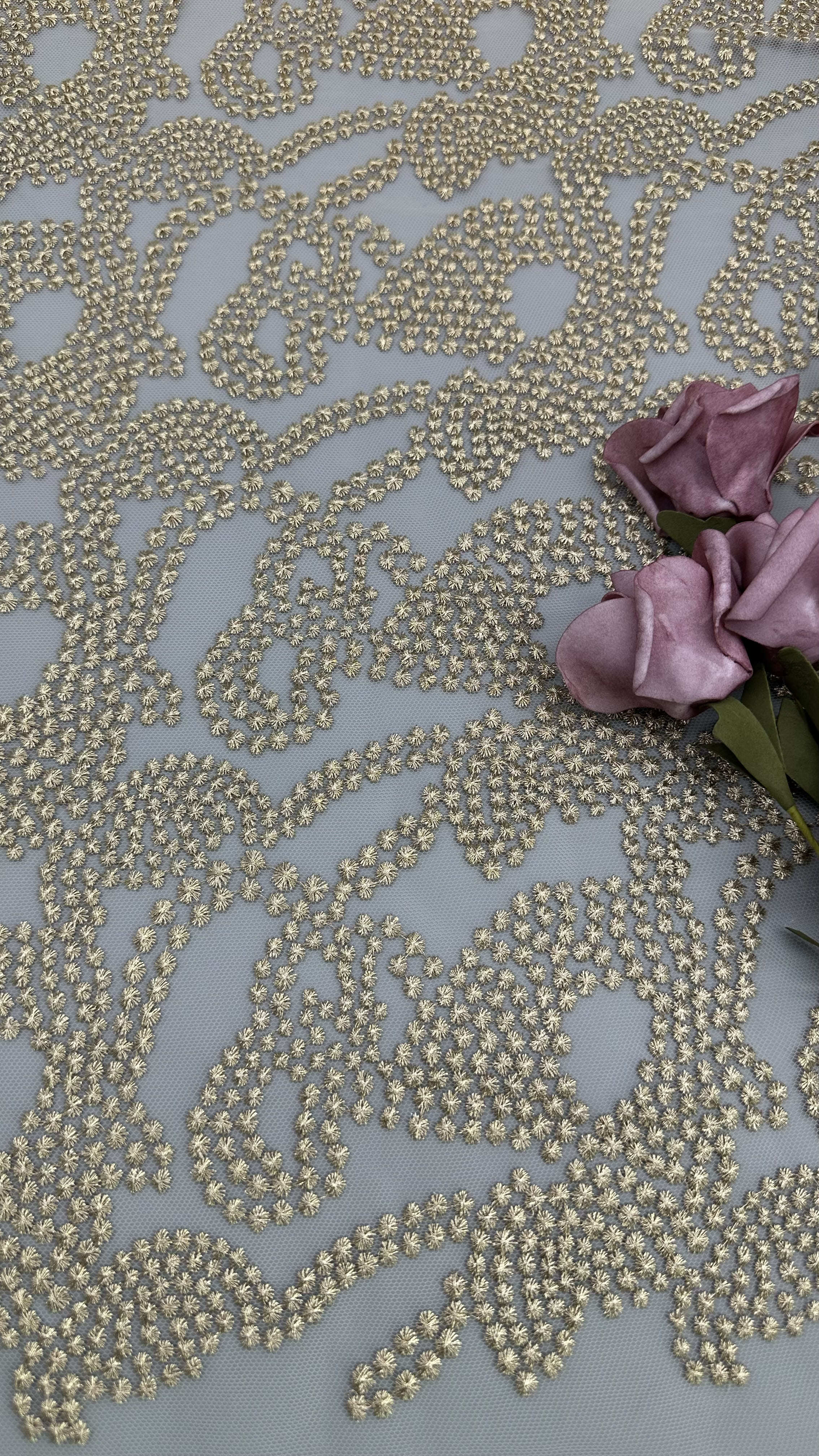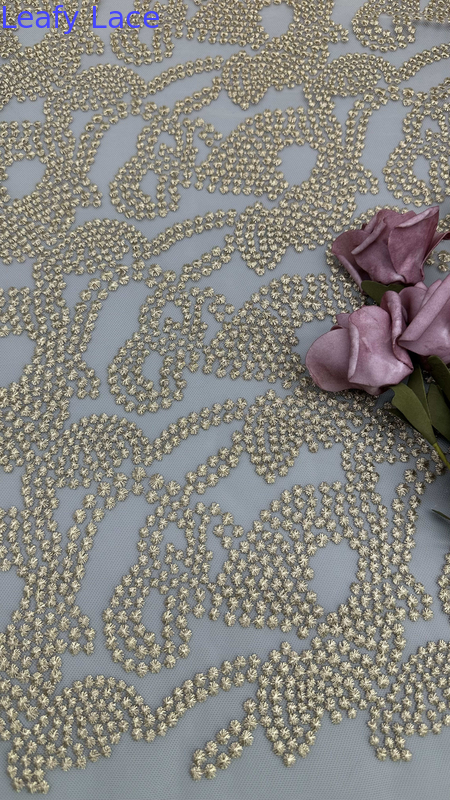 | Destacar: | tecido de renda metálica para vestidos de noiva,tecido de renda com cordão para vestidos,tecido metálico de renda com folhas |