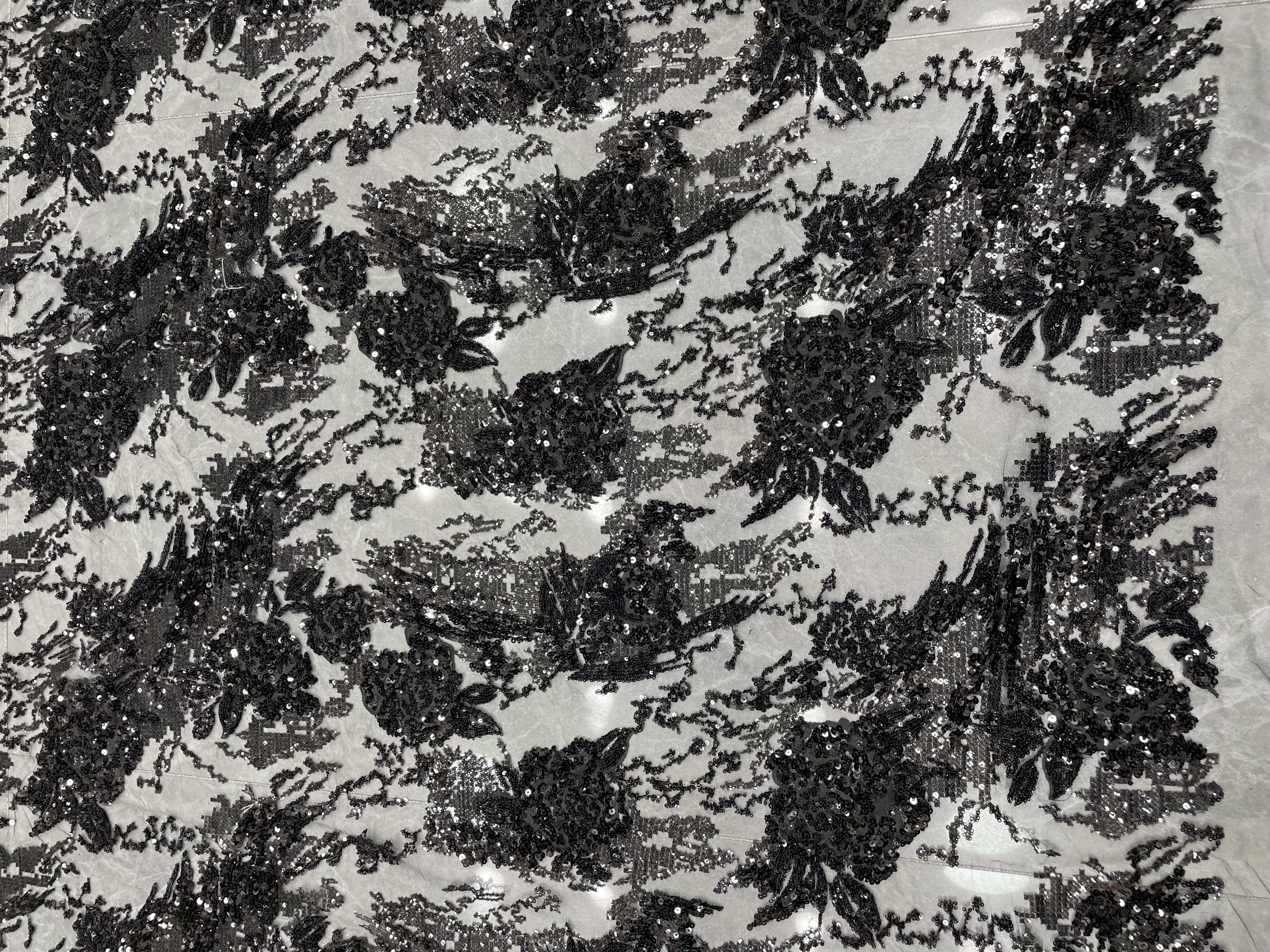 O tecido de bordado de renda com delicados motivos de folhas é uma escolha popular para vestidos de casamento e festa, oferecendo elegância, textura e detalhes intrincados. A tecnologia por trás de sua produção envolve uma mistura de artesanato tradicional e inovações têxteis modernas.