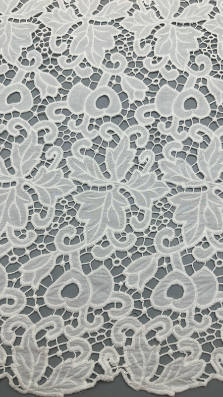 O tecido de bordado de renda com delicados motivos foliares é uma escolha popular para vestidos de casamento e festas, oferecendo elegância, textura e detalhes intrincados. A tecnologia por trás de sua produção envolve uma mistura de artesanato tradicional e inovações têxteis modernas.