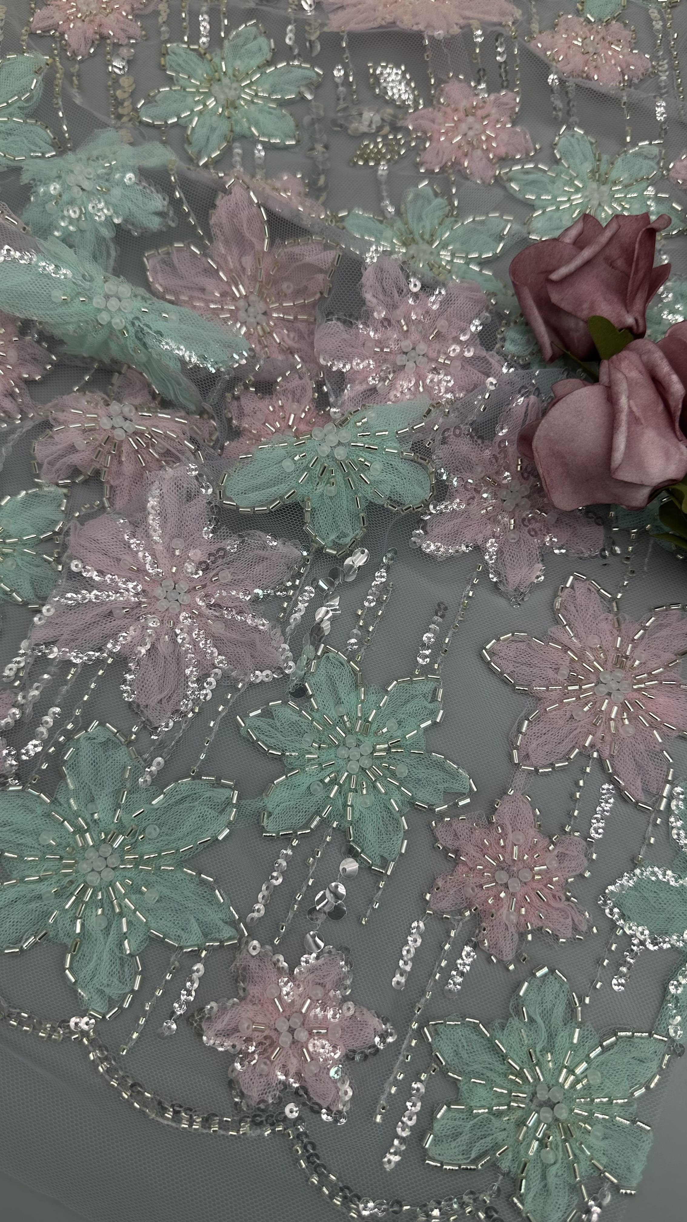 Lace embroidery fabric with delicate leafy motifs is a popular choice for wedding and party dresses, offering elegance, texture, and intricate detailing. The technology behind its production involves a blend of traditional craftsmanship and modern textile innovations.