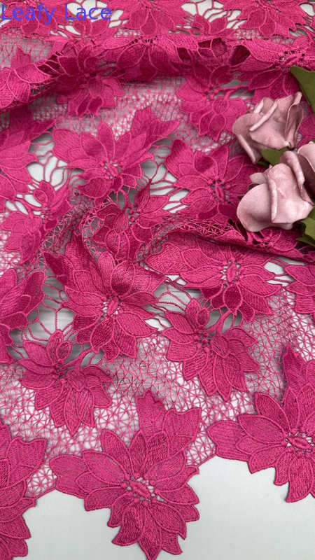| Destacar: | Tecido de renda guipura para vestido de noiva,Tecido de renda bordada com folhas rosa,Tecido de renda floral com bordado 3D |