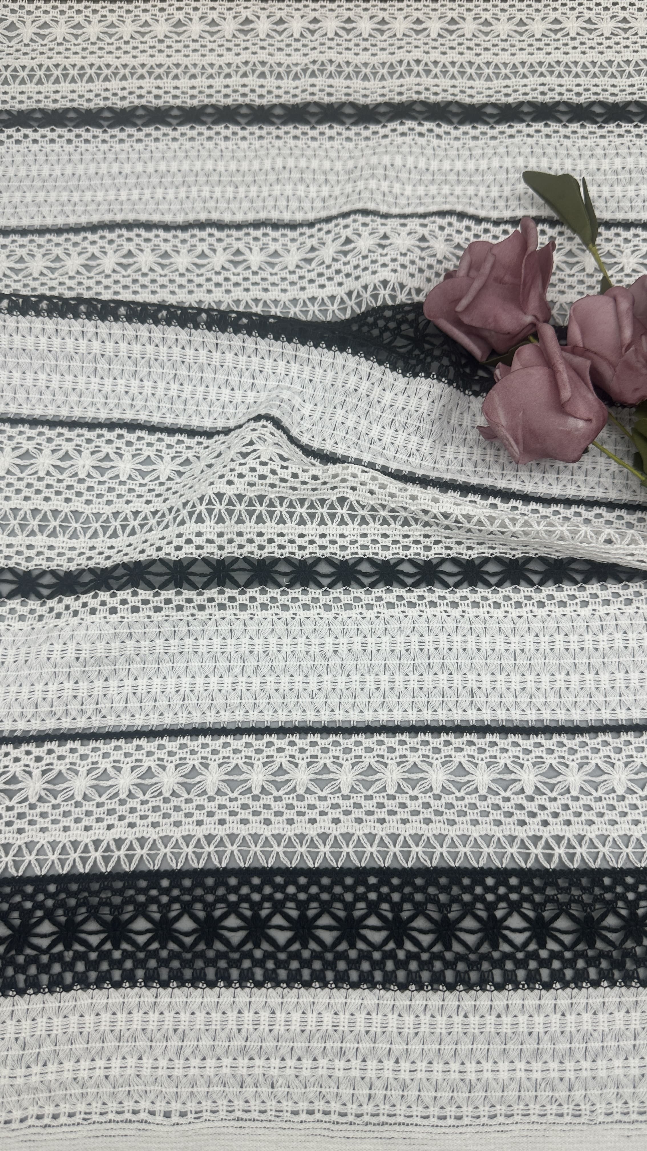| Destacar: | black white guipure lace fabric,elegant embroidered bridal lace,luxury hollow-up lace fabric |