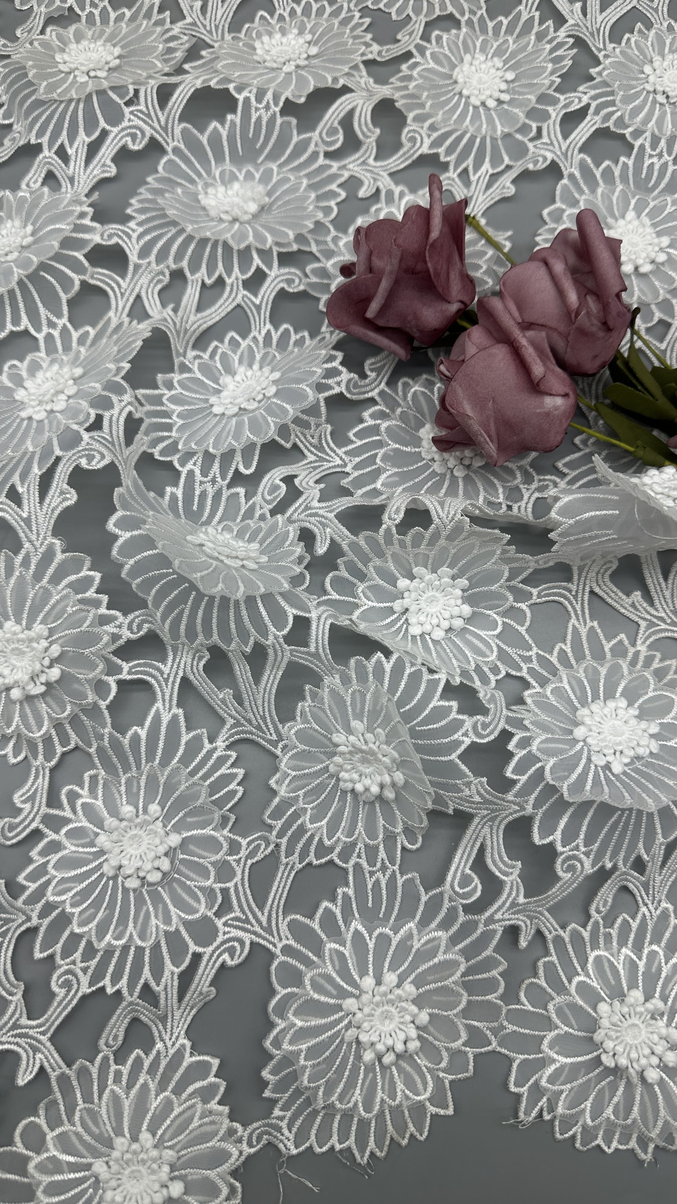 A creative team keeps abreast of trends. The research facilities and production equipment are all advances. Most of our patterns are copyrighted and based on original artwork. Most important is our focus on breakthrough of the techniques that advance the art of lace marking . Additionally, Leafy Lace Carries the enough greige and finished colors to response to our customers’ s rapidly changing needs.